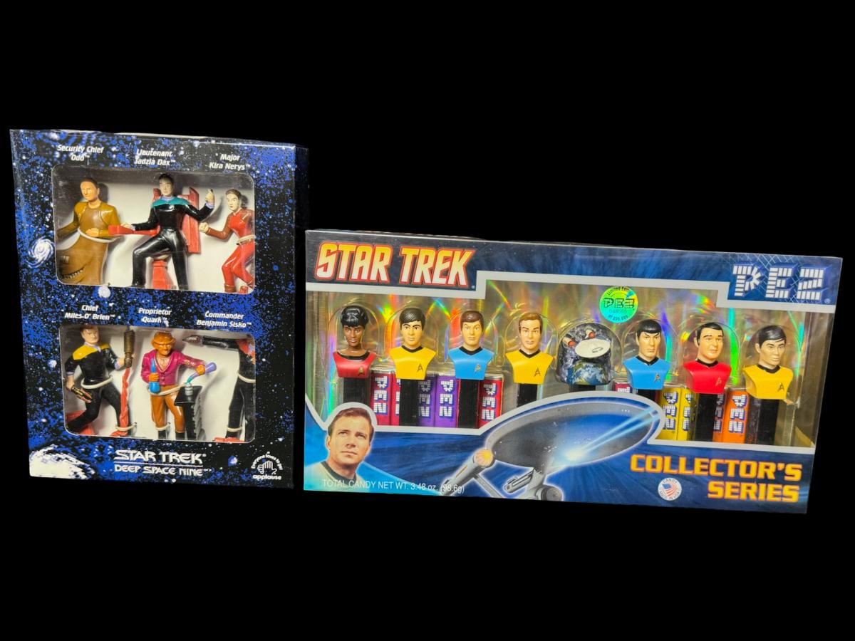 Includes an unopened Star Trek Pez Dispensers set, and a complete set of Star Trek Deep Space Nine action figures. Total of two pieces. Each is in the original unopened packaging. Pre-auction estimate: $50-$75.