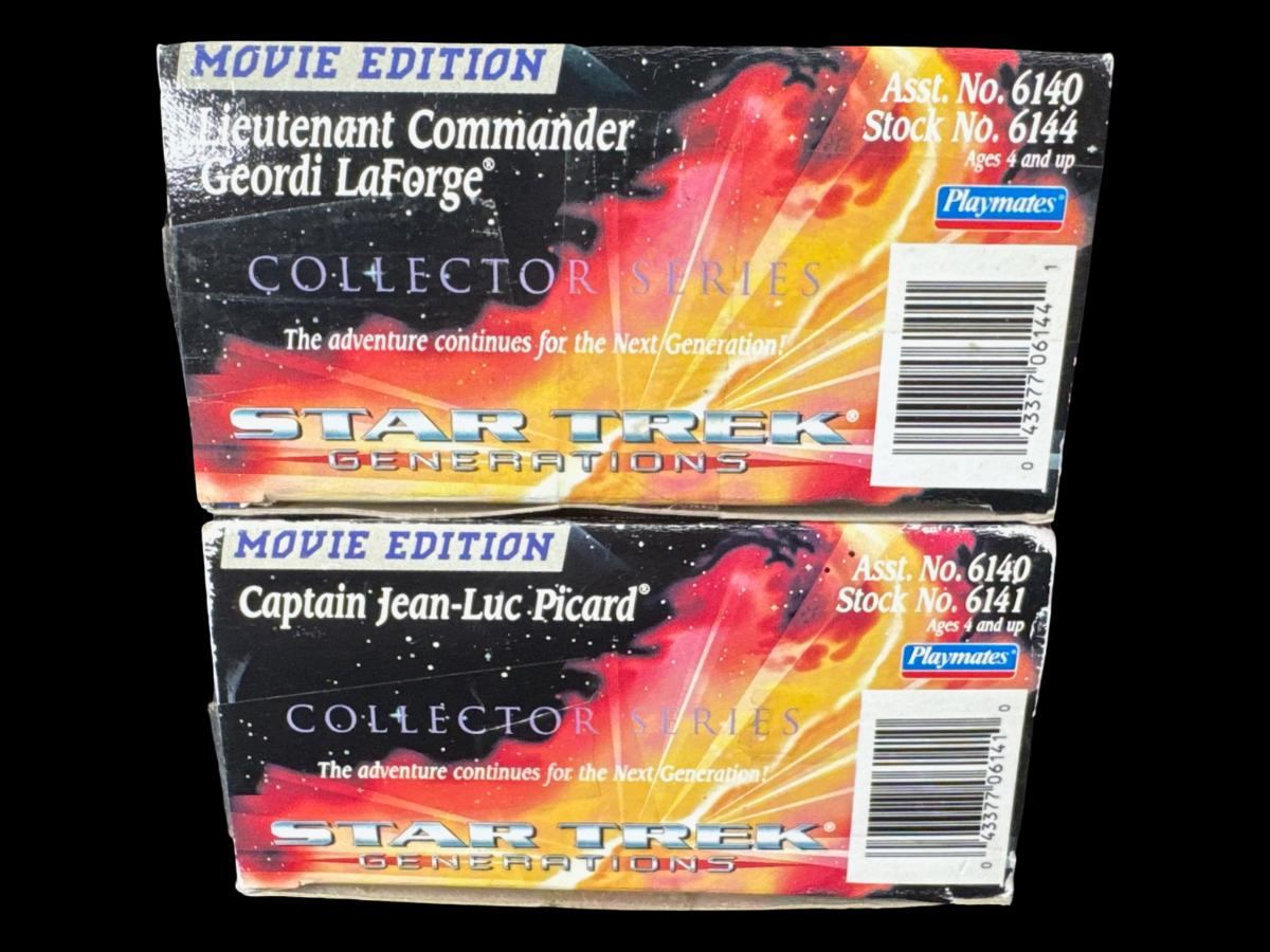 Includes Lt. Commander Geordi La Forge, and Capt. Jean-Luc Picard. Total of two pieces. In the original packaging.