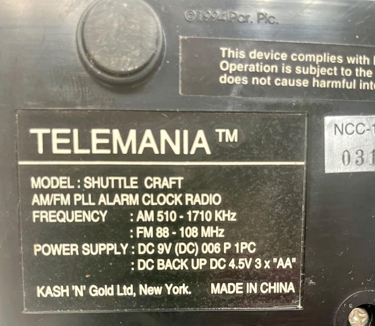 Star Trek Shuttlecraft Alarm Clock AM FM Radio