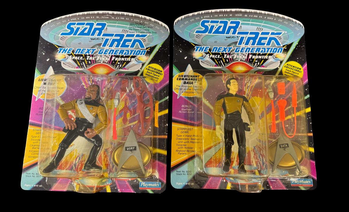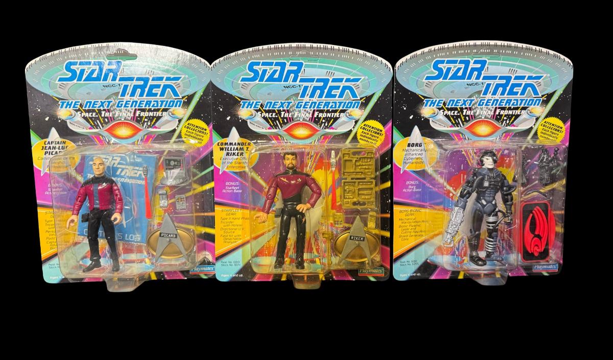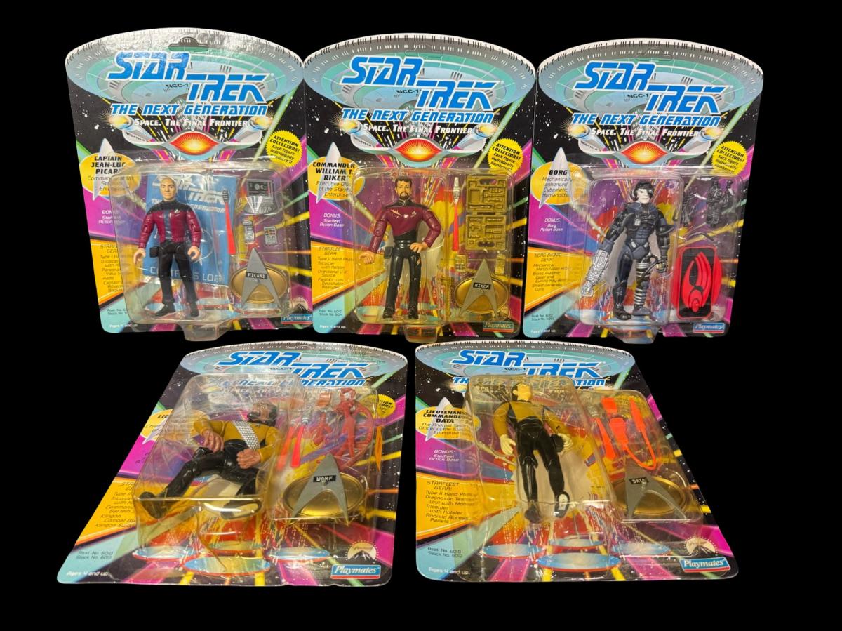 NOS. Includes Lt. Commander Data, Lt. Worf, Borg, Commander William Riker, and Capt. Jean-Luc Picard. Total of five pieces. In the original unopened packaging.