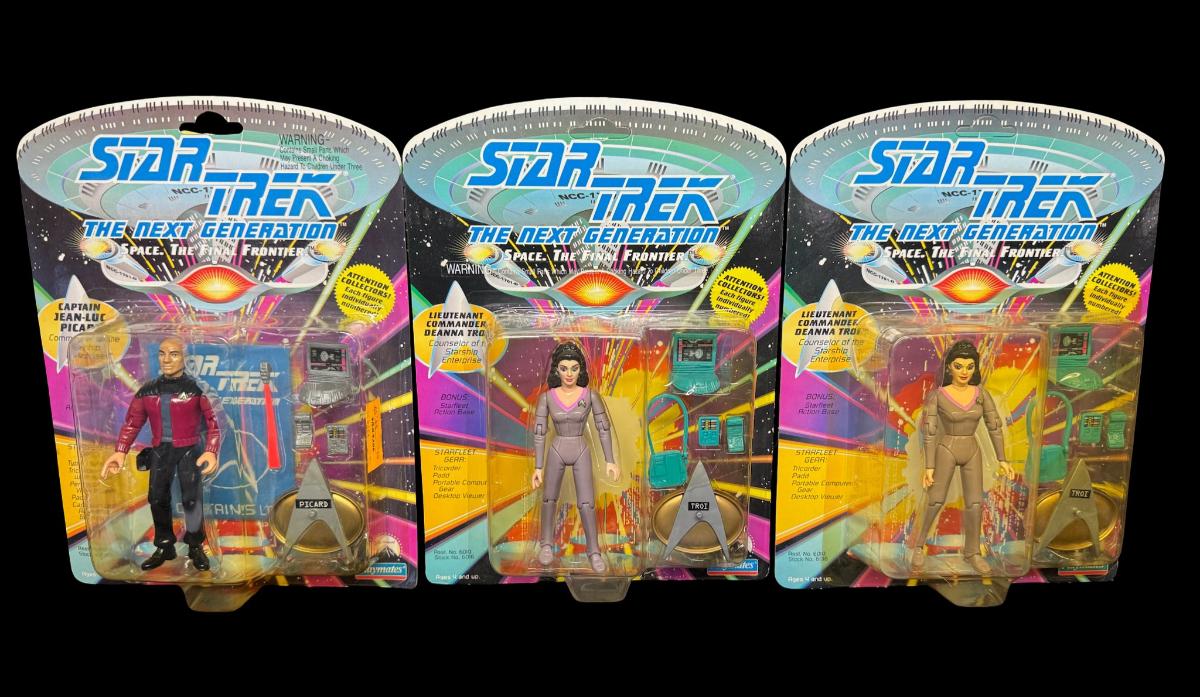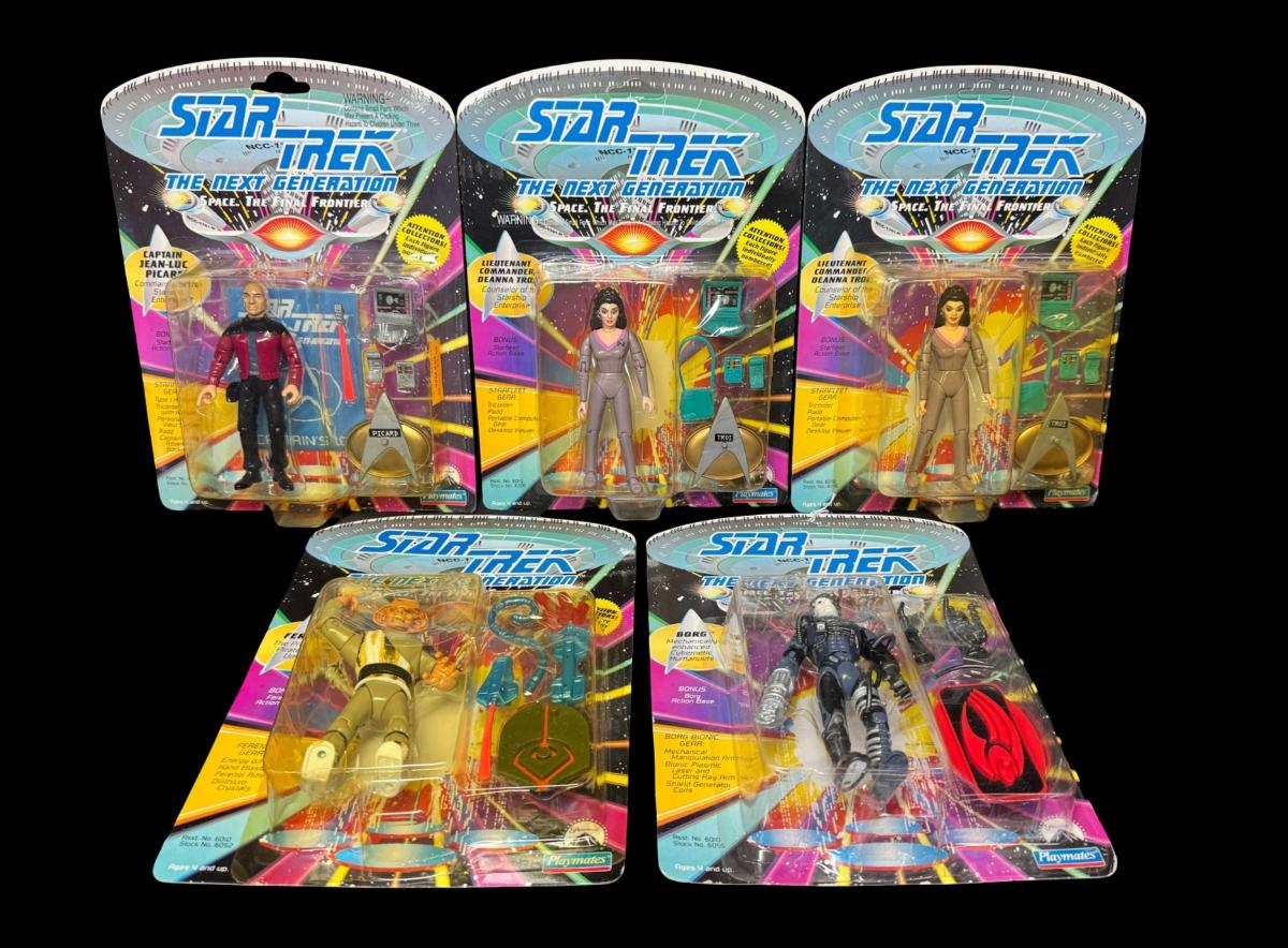 NOS. Includes Capt. Picard, Lt. Commander Deanna Troi (x2), Ferengi, and Borg. Total of five pieces. In the original unopened packaging.