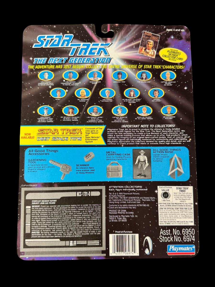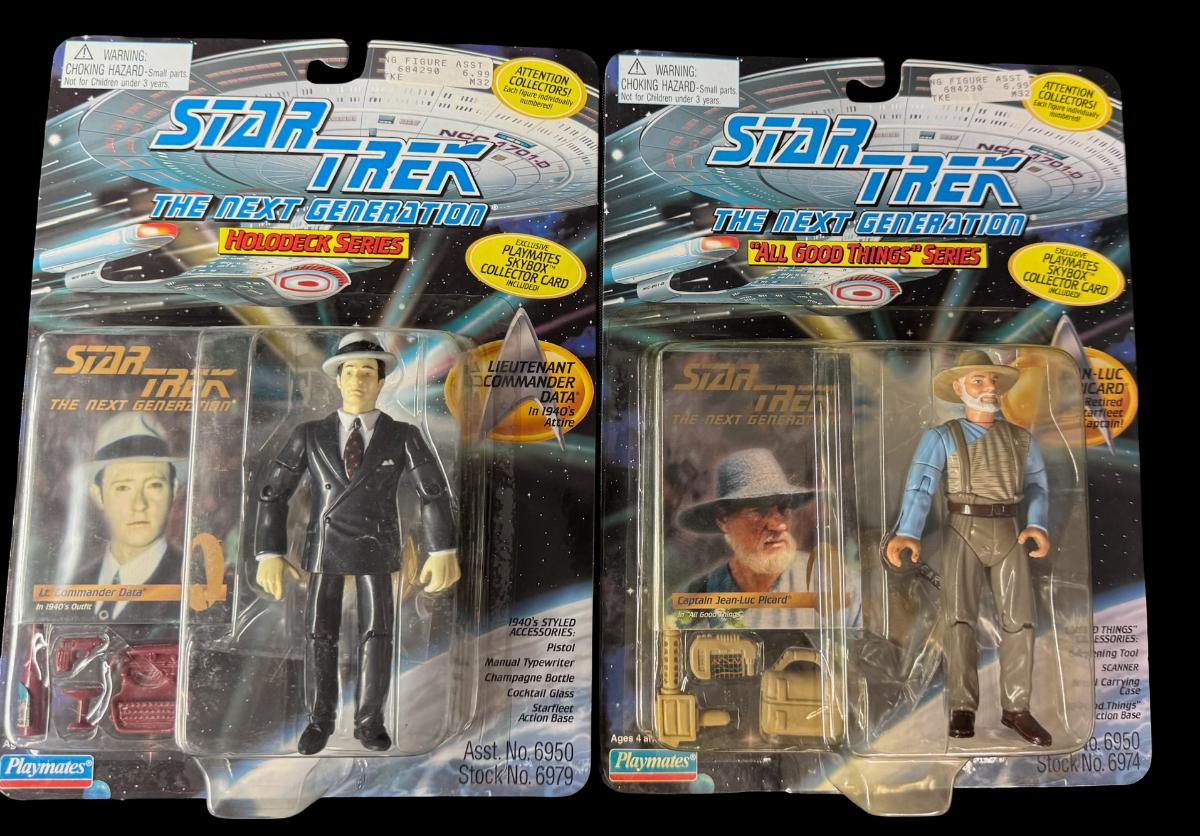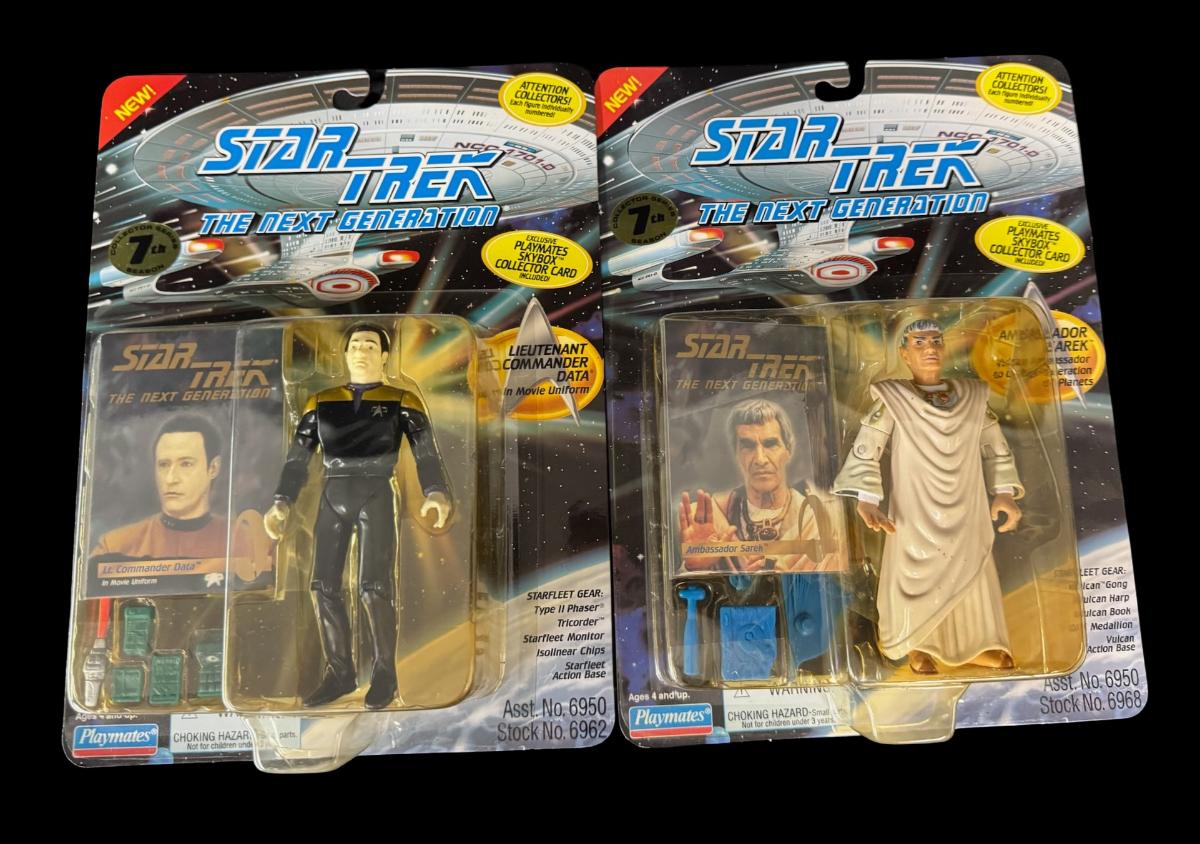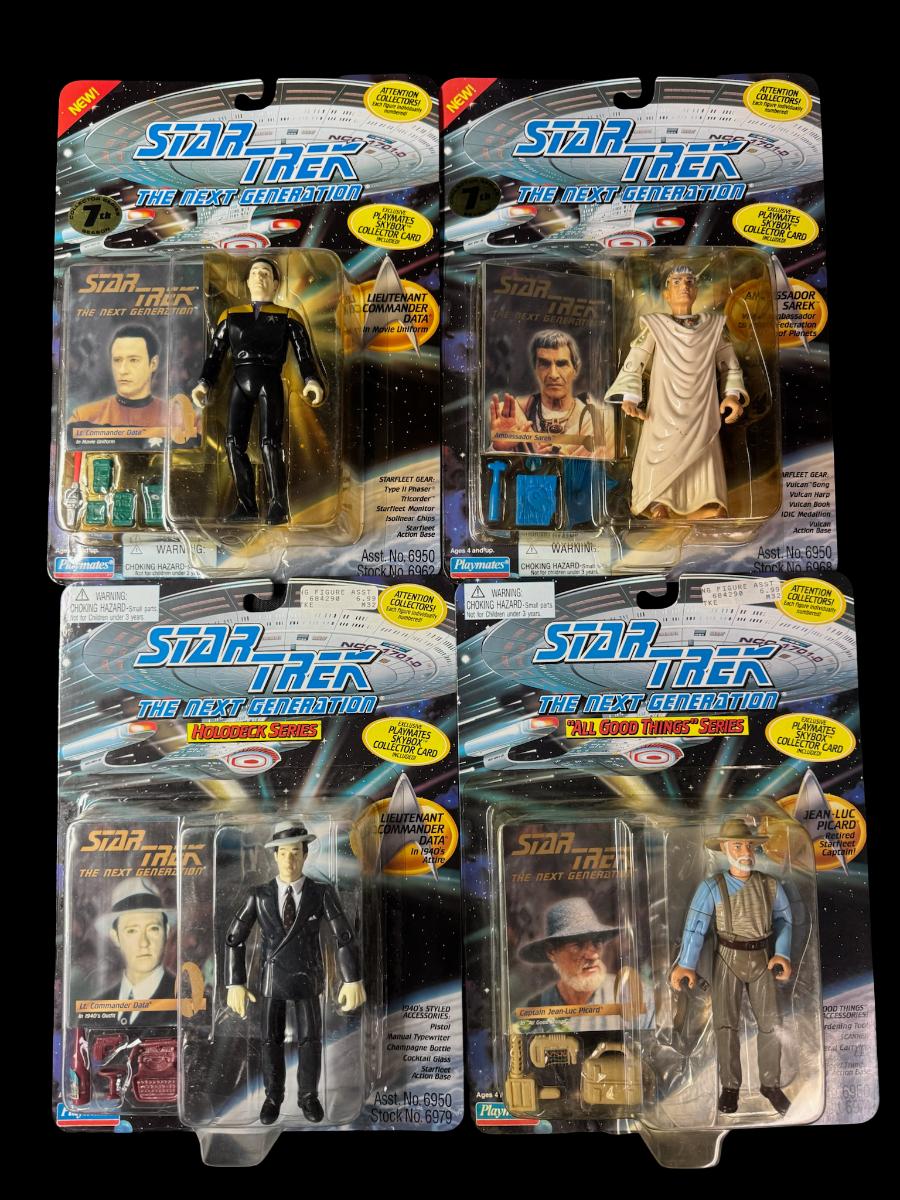 Includes Lt. Commander Data (x2), Captain Jean-Luc Picard, and Ambassador Sarek. Total of four pieces. In the original packaging.