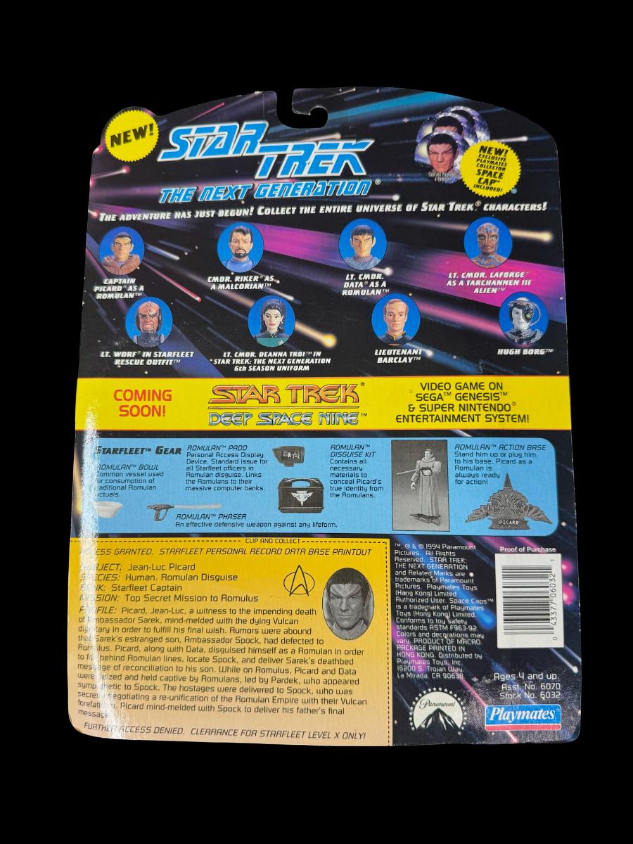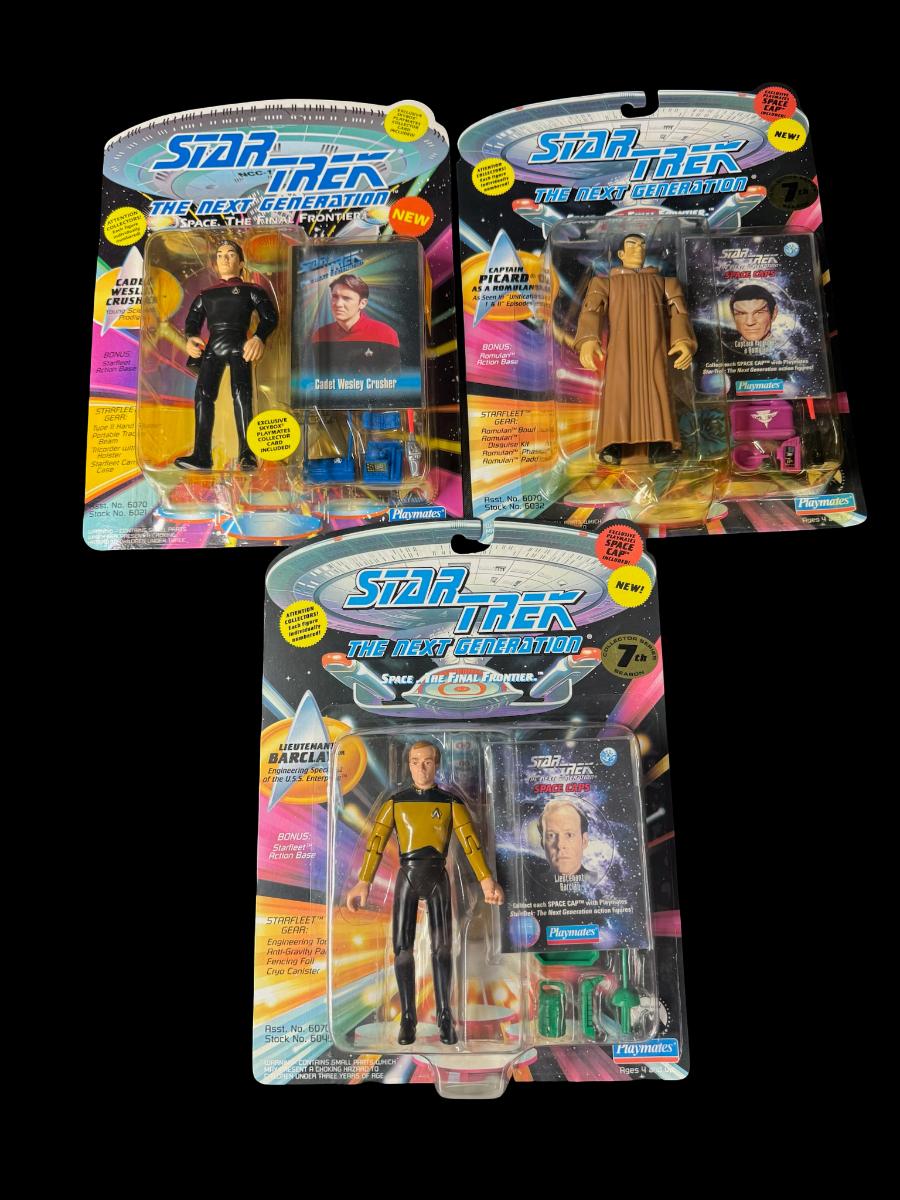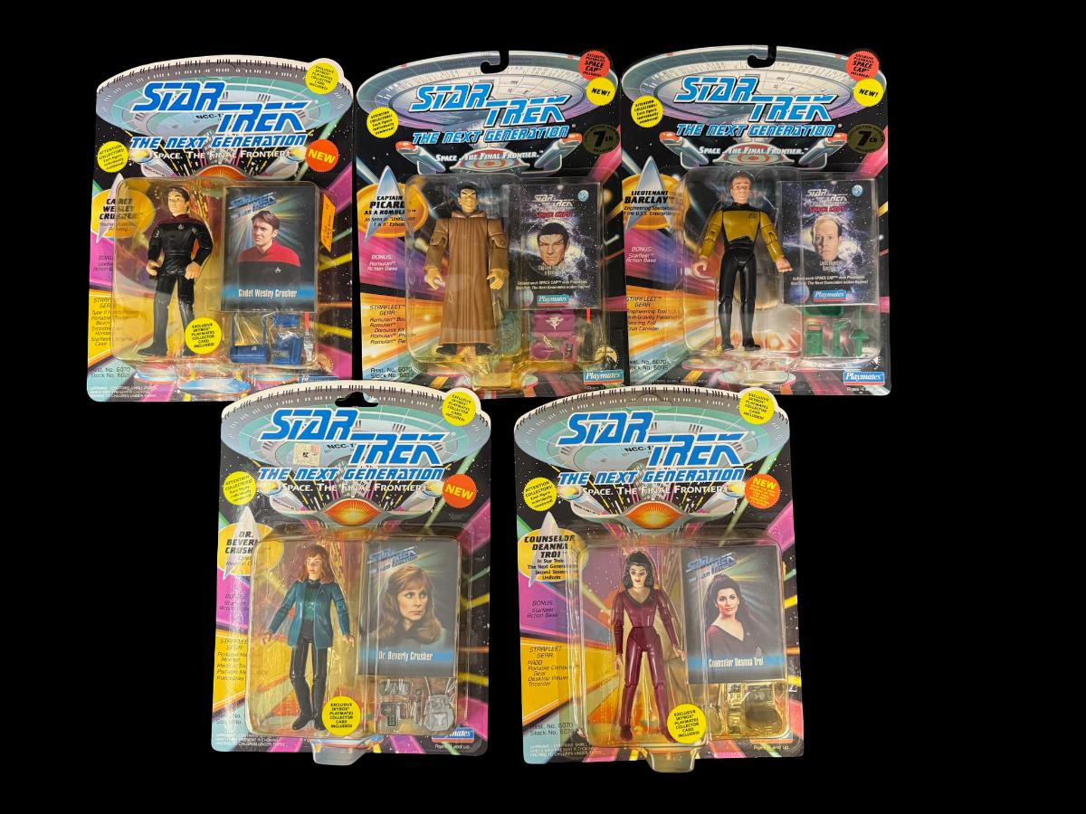 Includes Lieutenant Barclay, Counselor Deanna Troi, Dr. Beverly Crusher, Captain Picard as a Romulan, and Cadet Wesley Crusher. Total of five pieces. In the original packaging.