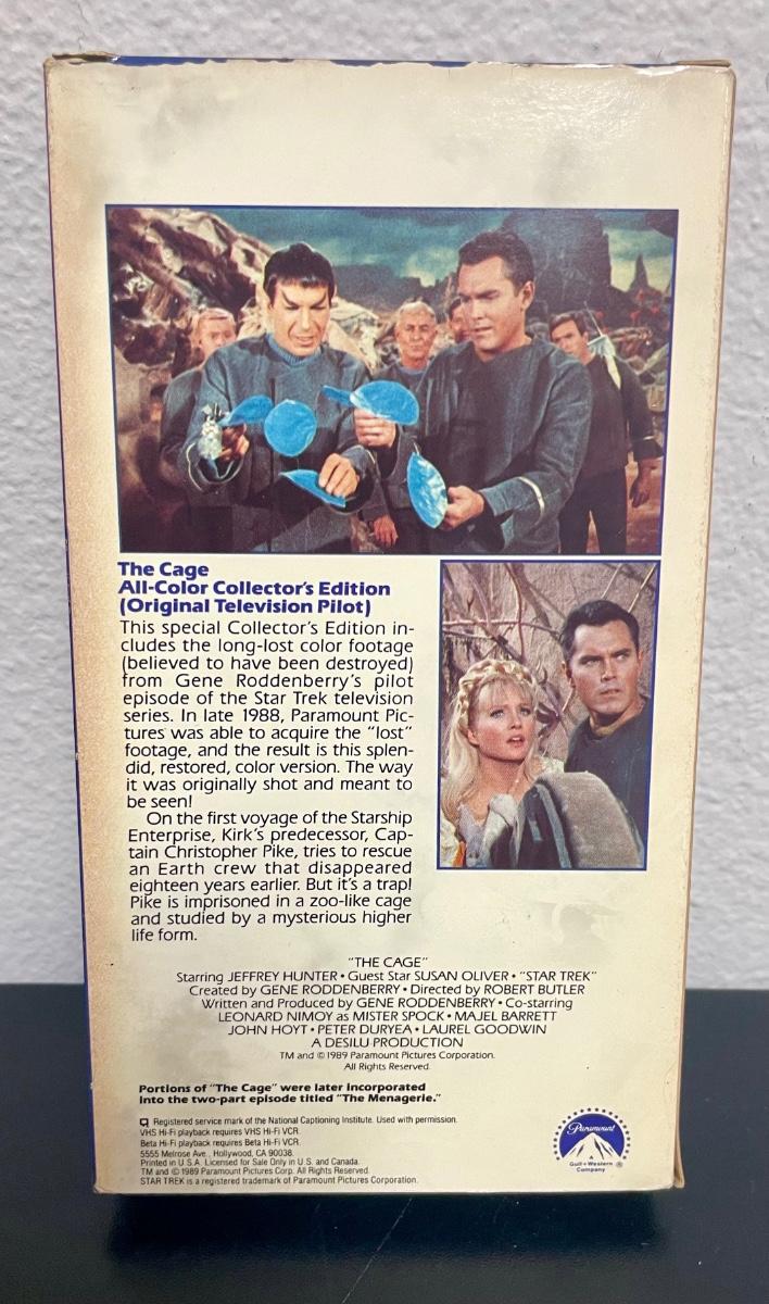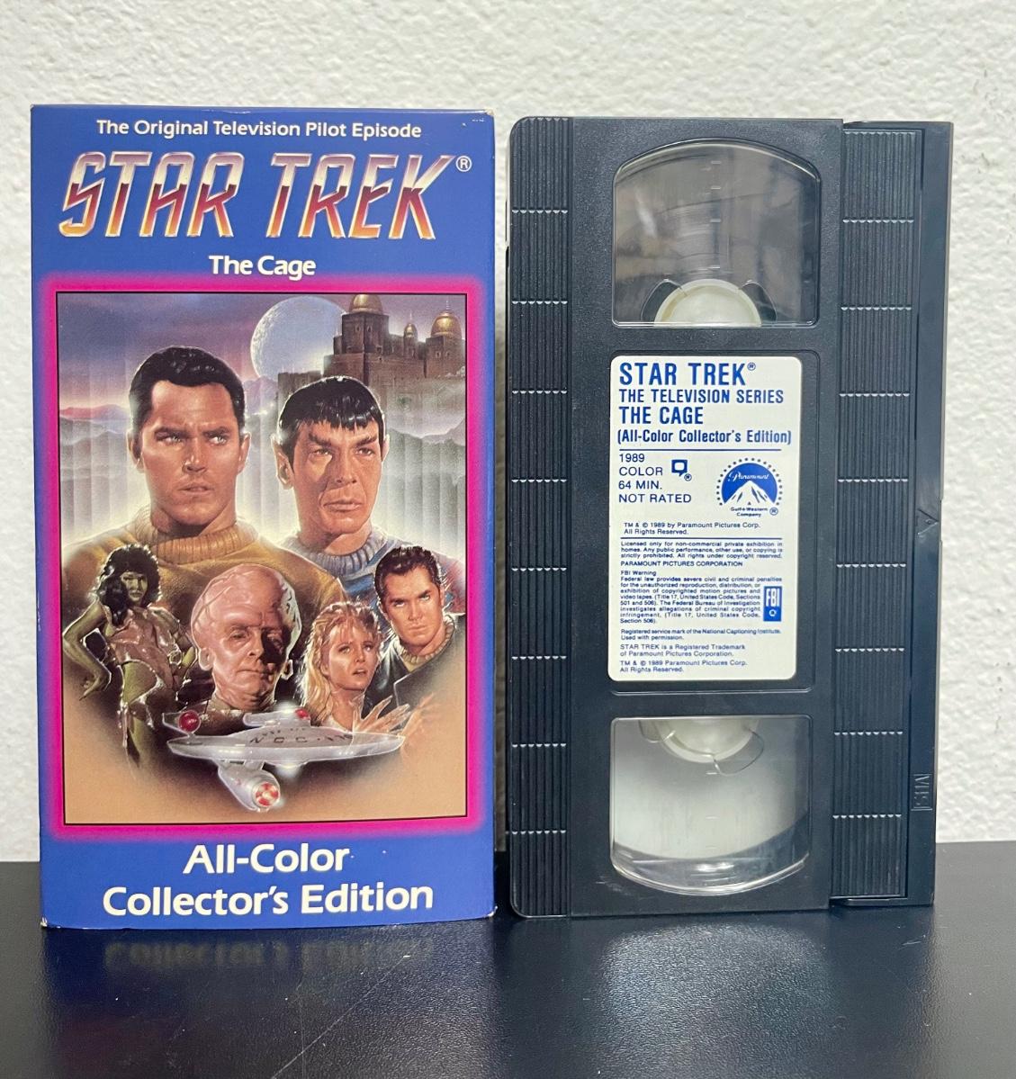 VHS color Star Trek pilot episode “The Cage” originally filmed in 1964 and originally seen in 1965. The is the full colorized version released in 1989. A rare item for Star Trek fans!