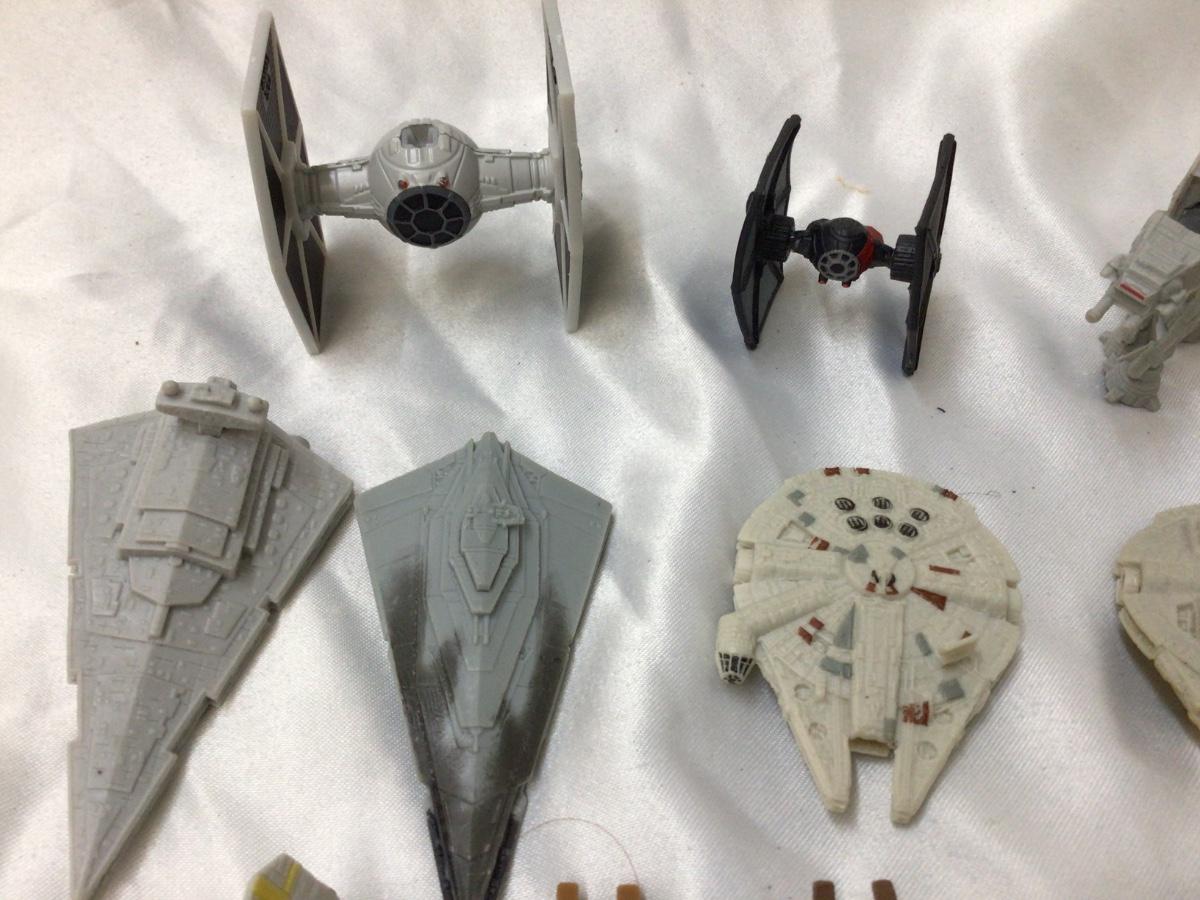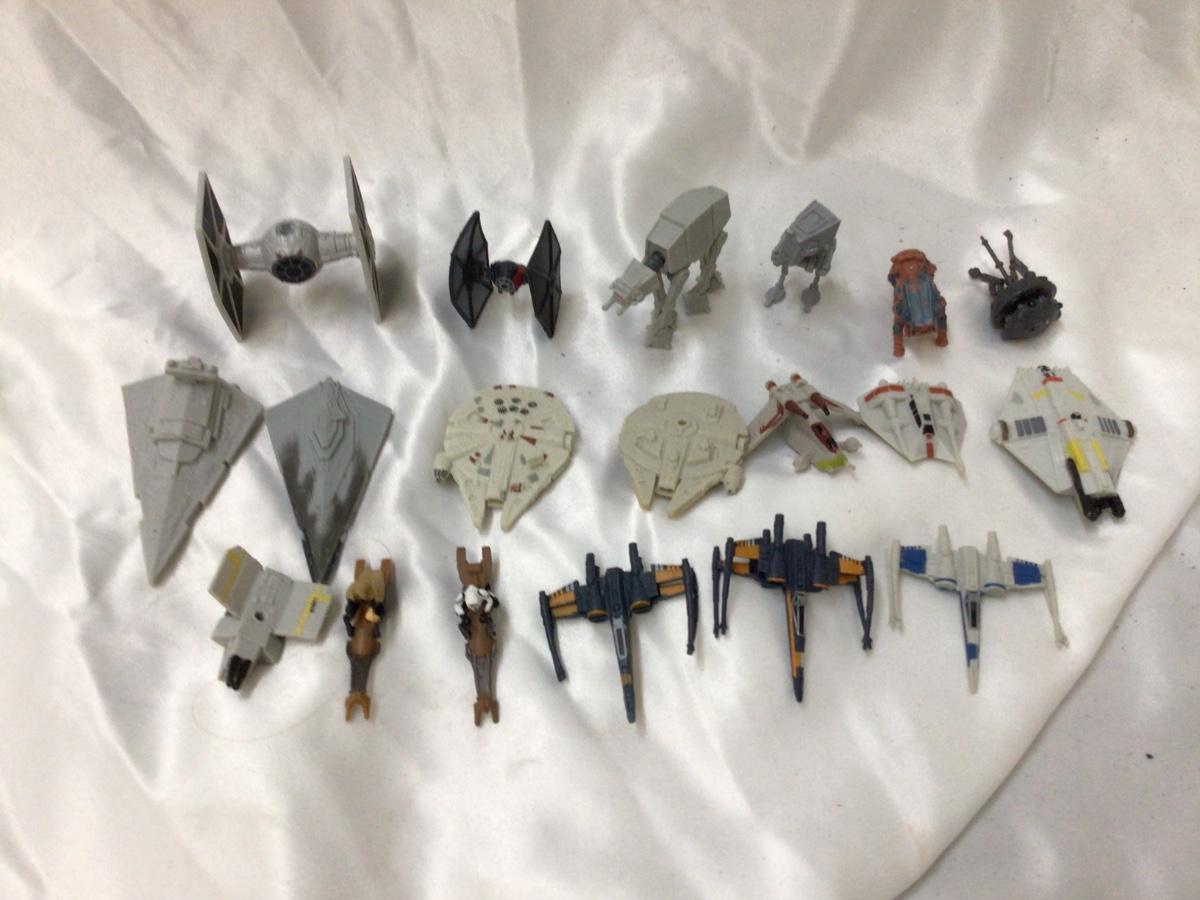 These are all mini toy Star Wars. You have mainly flying ships, and other pieces.
