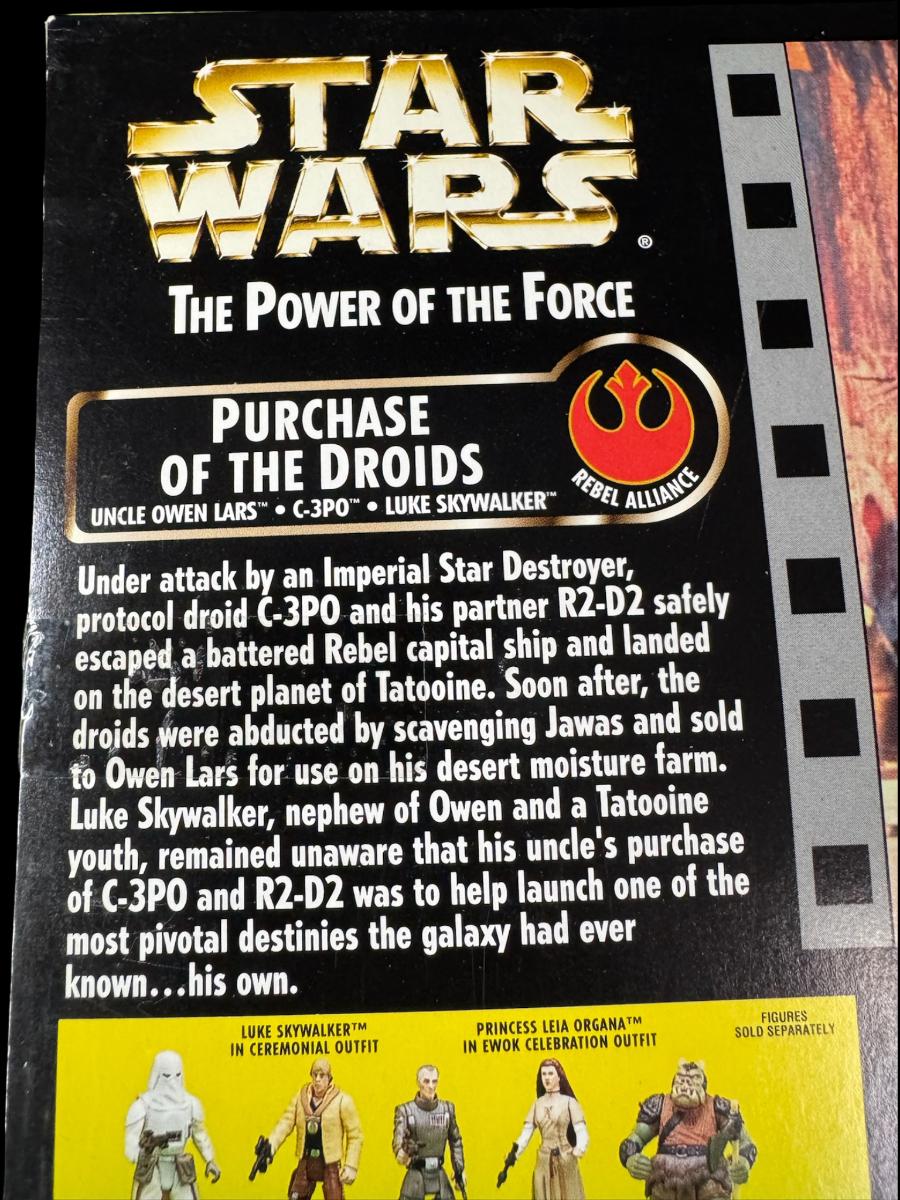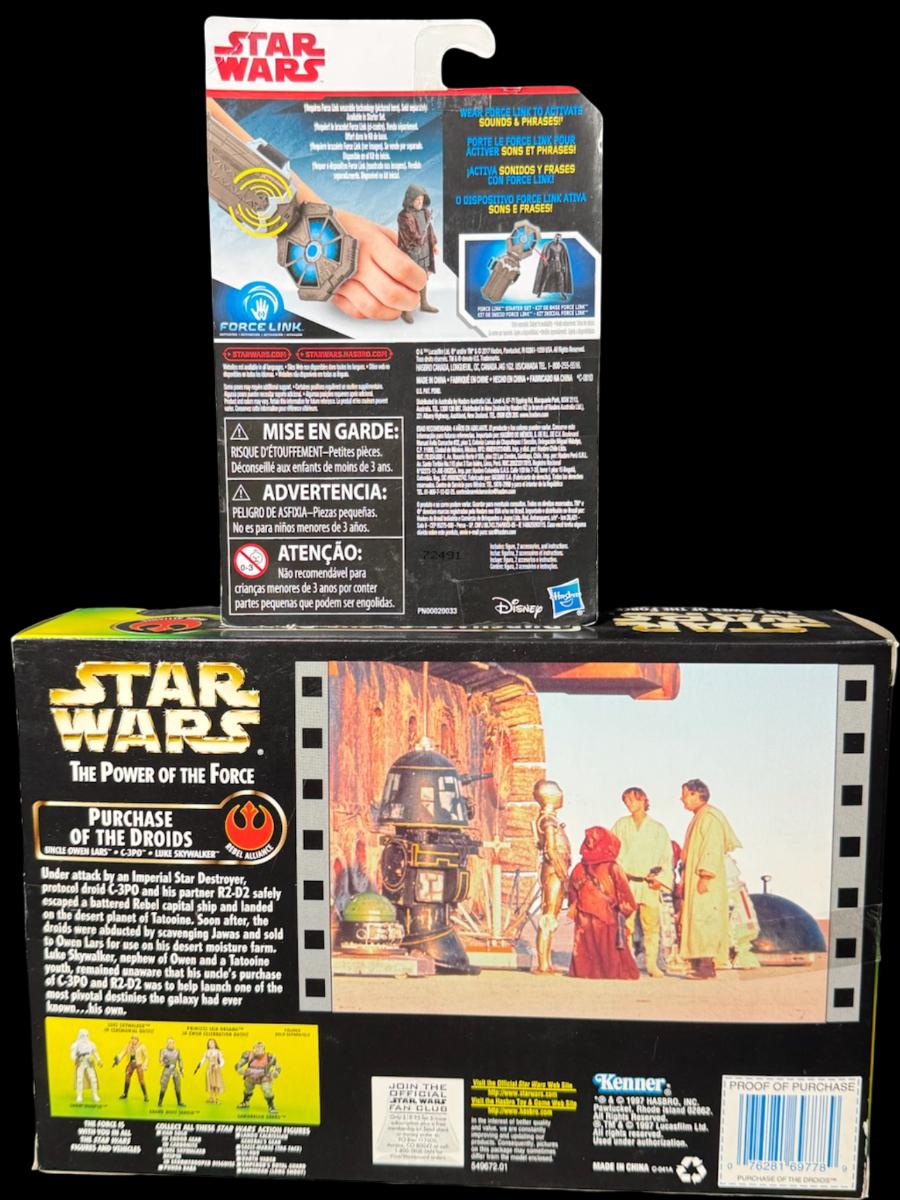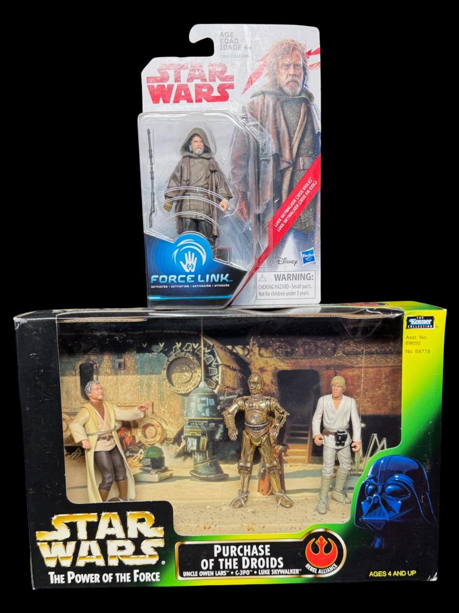 Includes a Purchase of the Droids, and Luke Skywalker Force Link action figure. Total of two pieces. Both pieces are in the original packaging. The Force Link has been opened, but the figure is in the package. Pre-auction estimate: $25-$50.