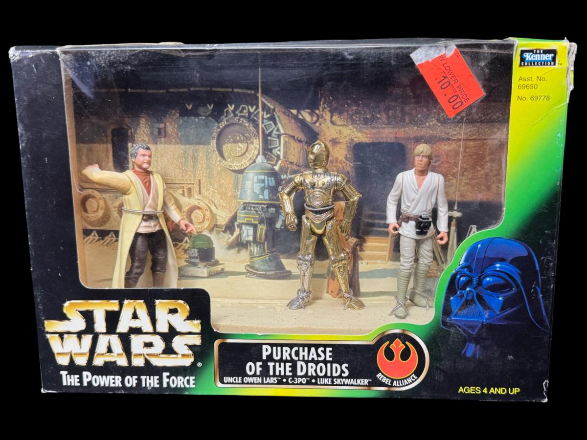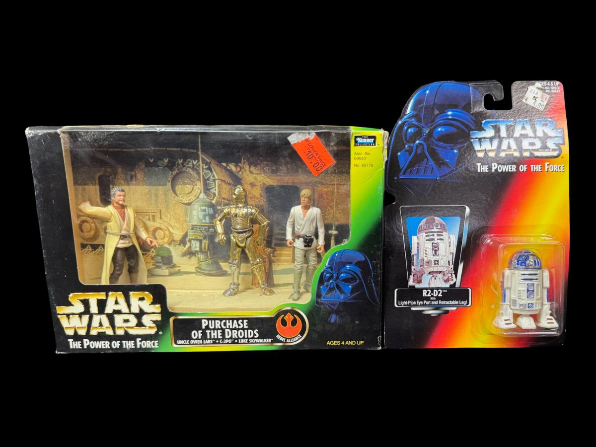 Includes a Purchase of the Droids, and an R2-D2 action figure. Both are in the original unopened packaging. Pre-auction estimate: $25-$50.