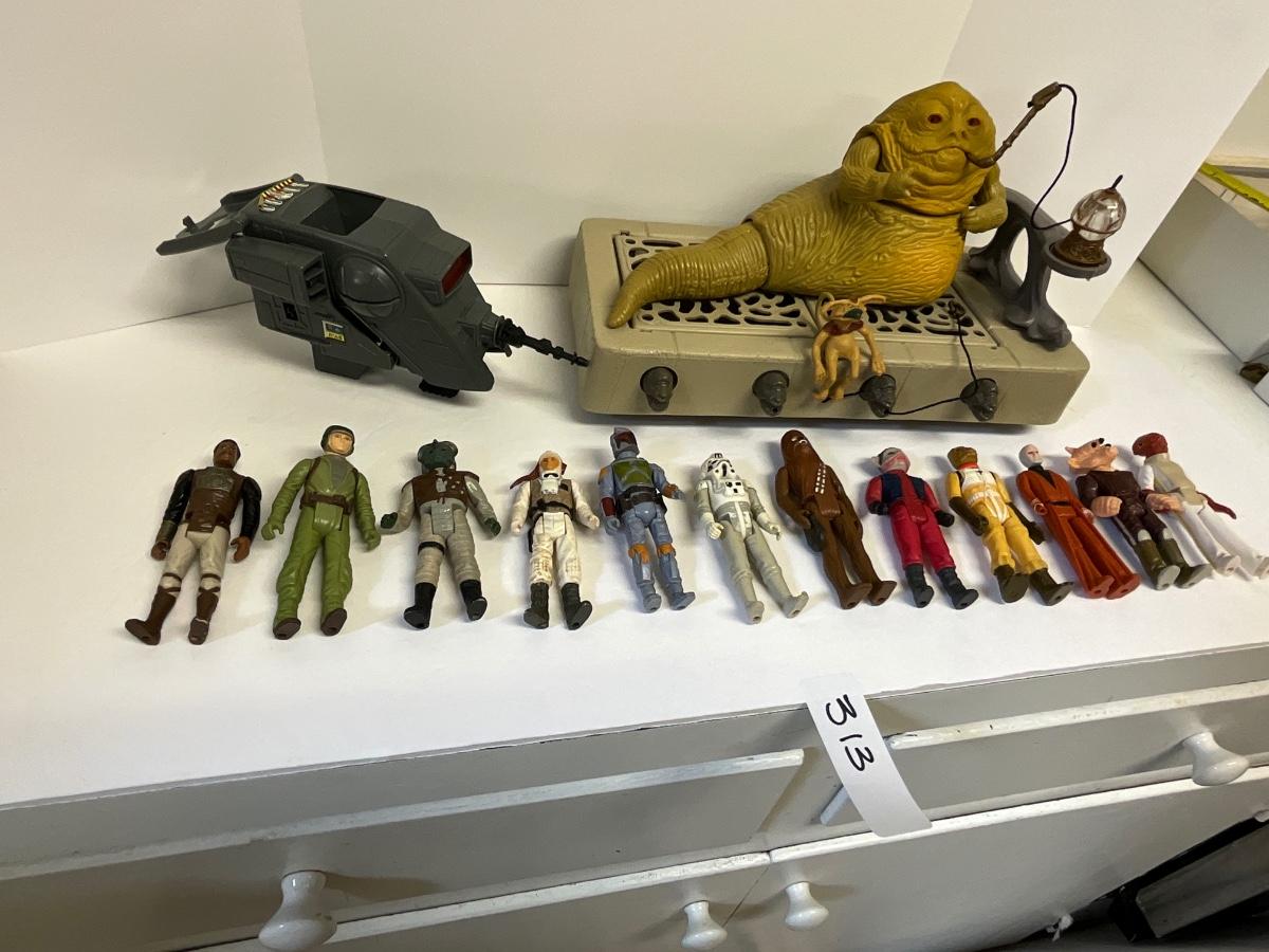 Star Wars Collectible Lot includes misc. star wars figures and Jabba the Hutt play set as pictured
