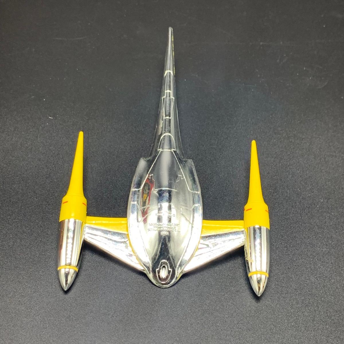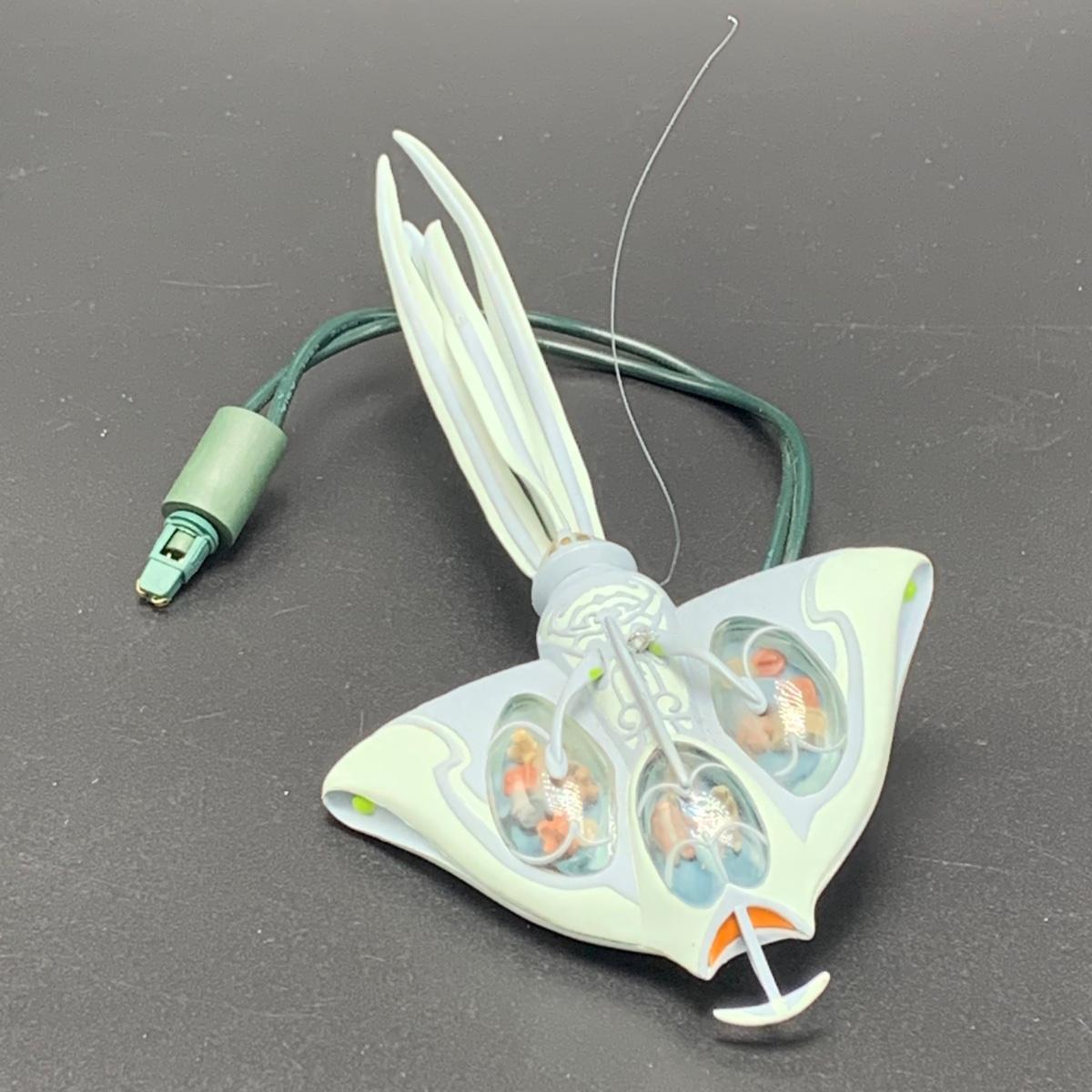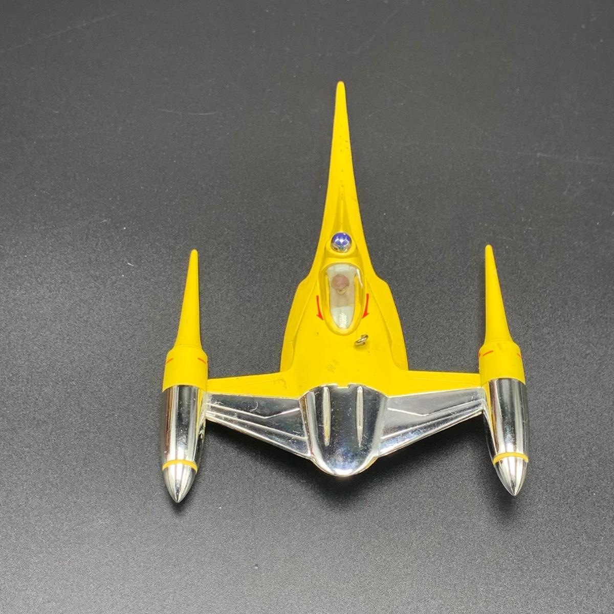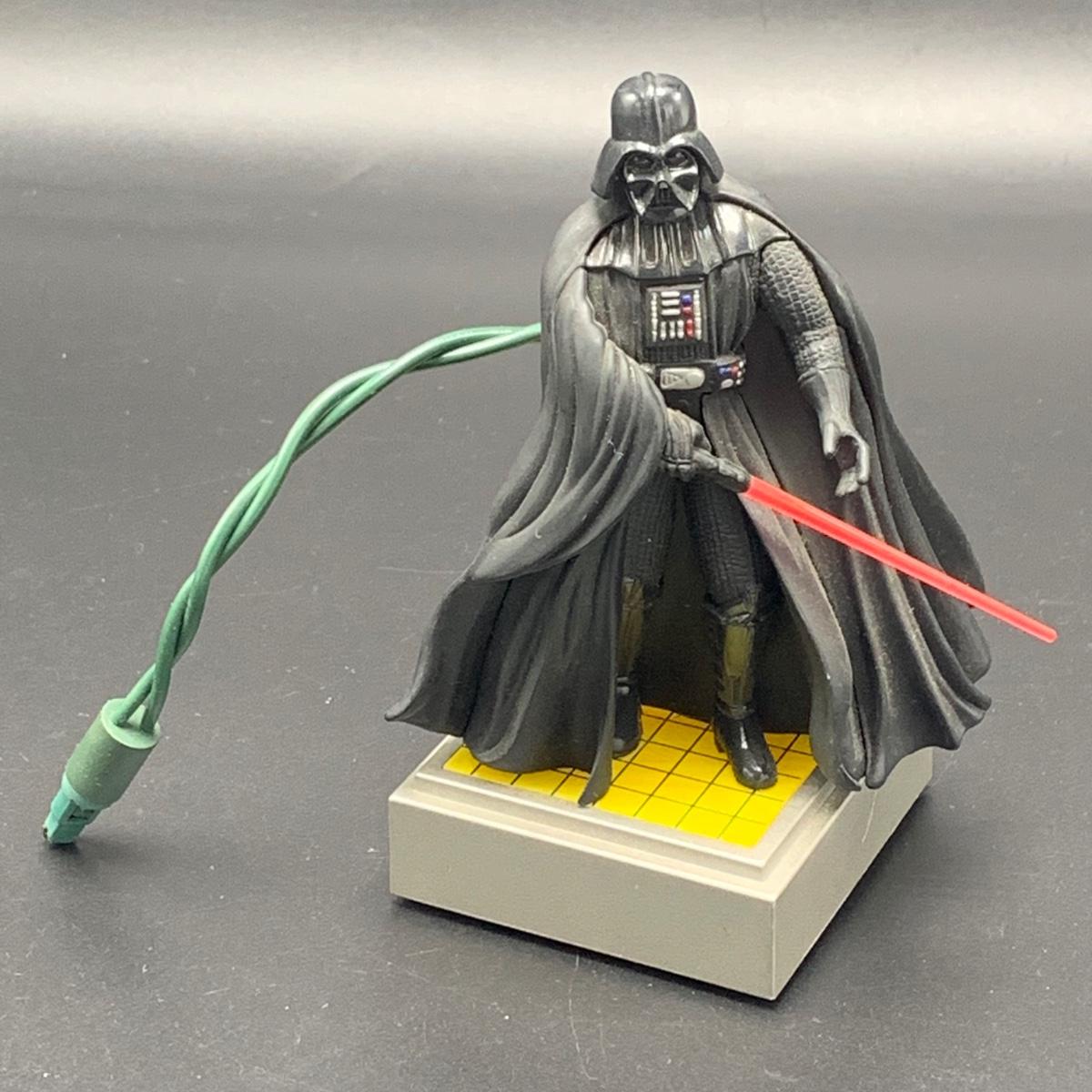 Seven Star Wars Hallmark keepsake ornaments. Three come with their original boxes. The Naboo Starfighter and the Slave Vehicle are not electronic. Of the electronic ornaments, C-3PO is the only one able to be tested; it speaks and lights up when its button is pressed. Items are plastic. The slave vehicle is a heavier plastic. It has pieces that appear to have been broken off and are missing. Darth Vader is the largest ornament and measures approximately 3” x 3” x 5”H.