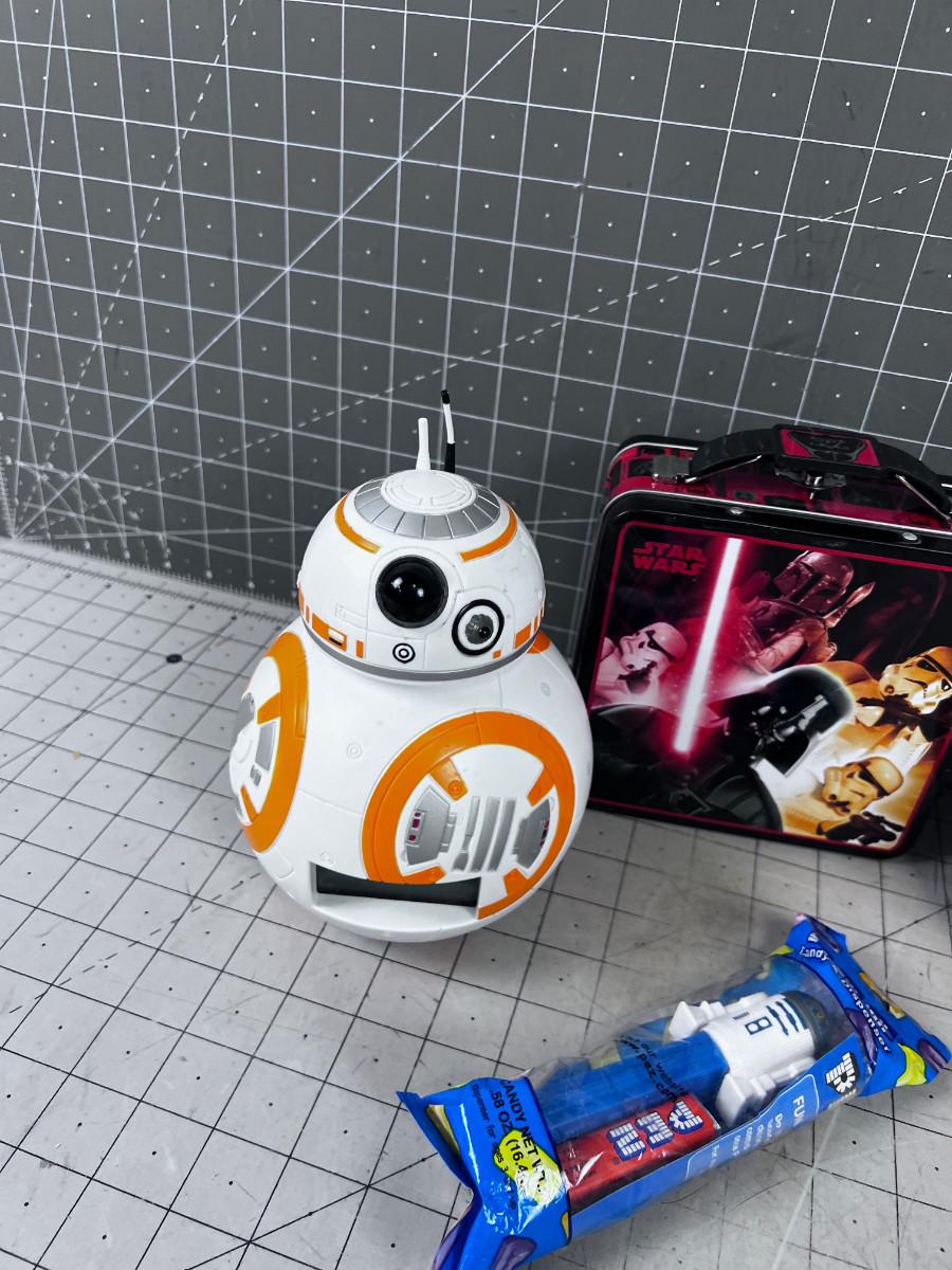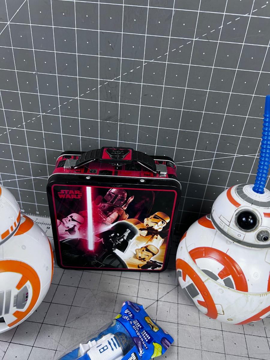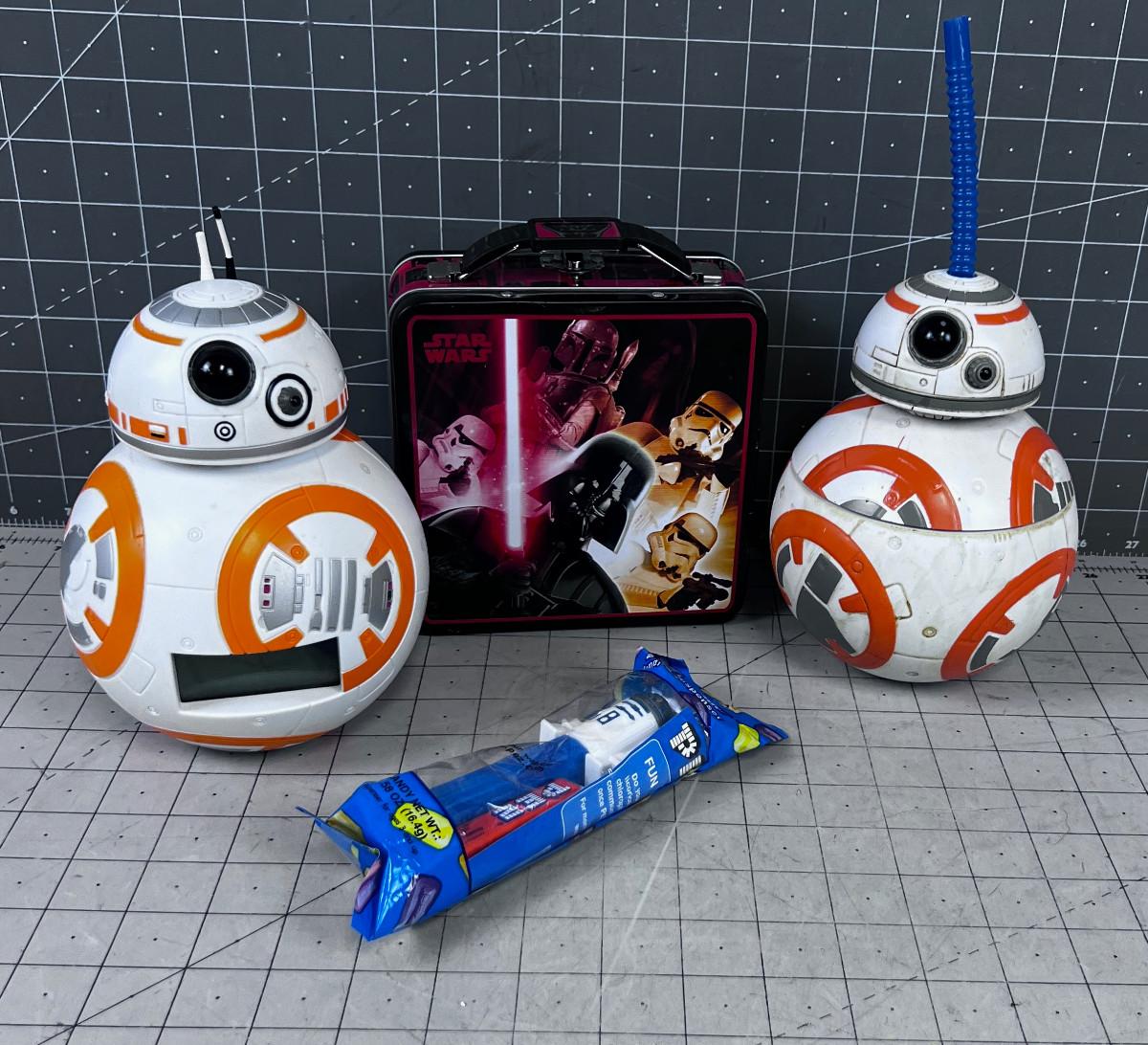 STAR WARS ITEMS: Clock, Tippy Cup, Pez,