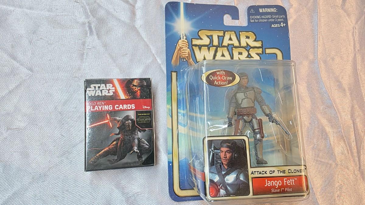 Star Wars Jango Fett Action Figure & Kylo Ren Playing Cards Bundle