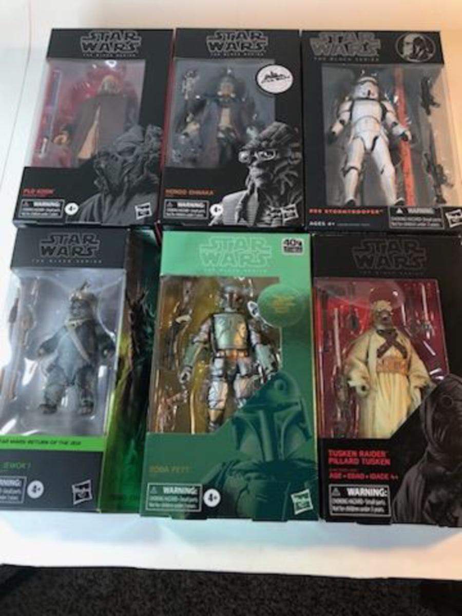Star Wars, lot of 6 6” figures, most are from the black series. Excellent condition