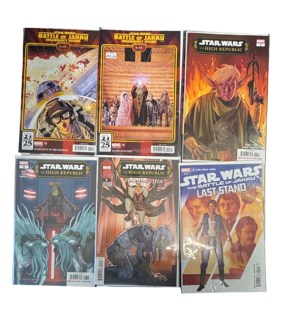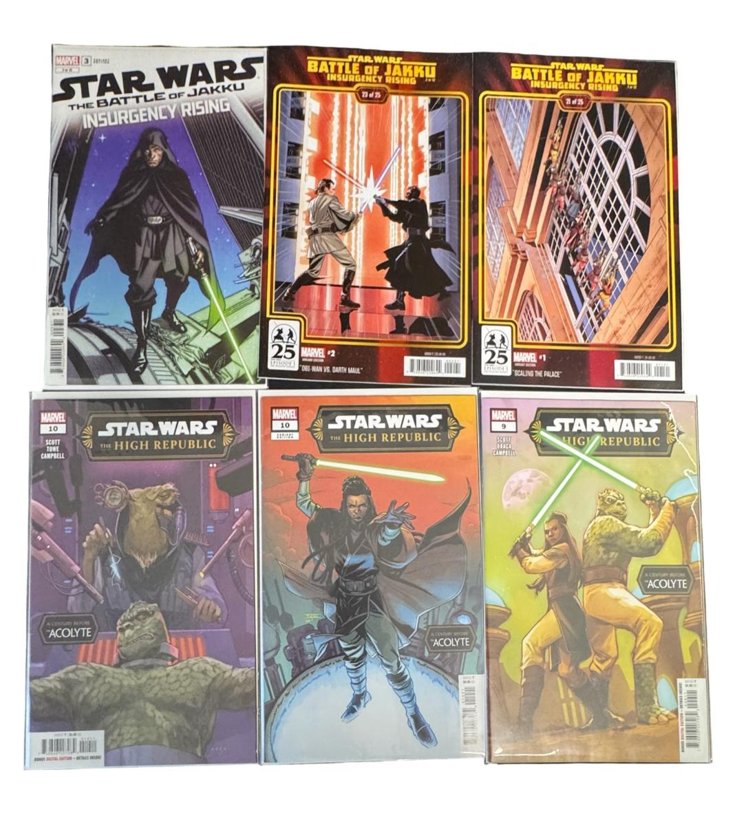 Includes the High Republic, Battle of Jakku, and The Rise of Skywalker. Total of 16 comic books. All books have been preserved at time of purchase.