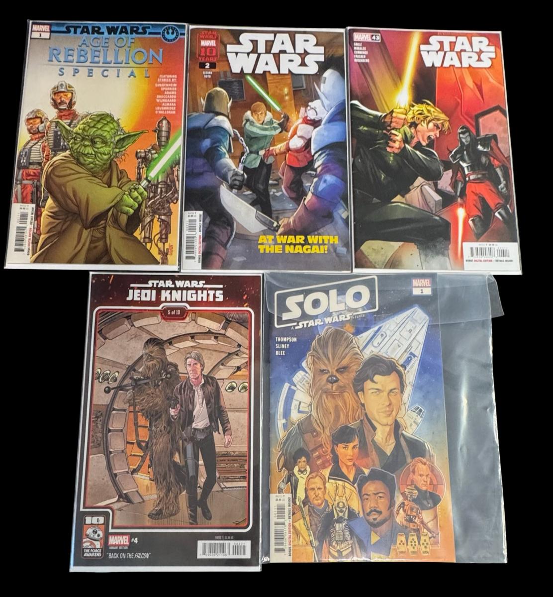 Includes Jedi Knights, Solo, “A Little Break,” Inquisitors, Chaos Agent, and Trial of Lando. Total of 13 comic books. All books were preserved at time of purchase.