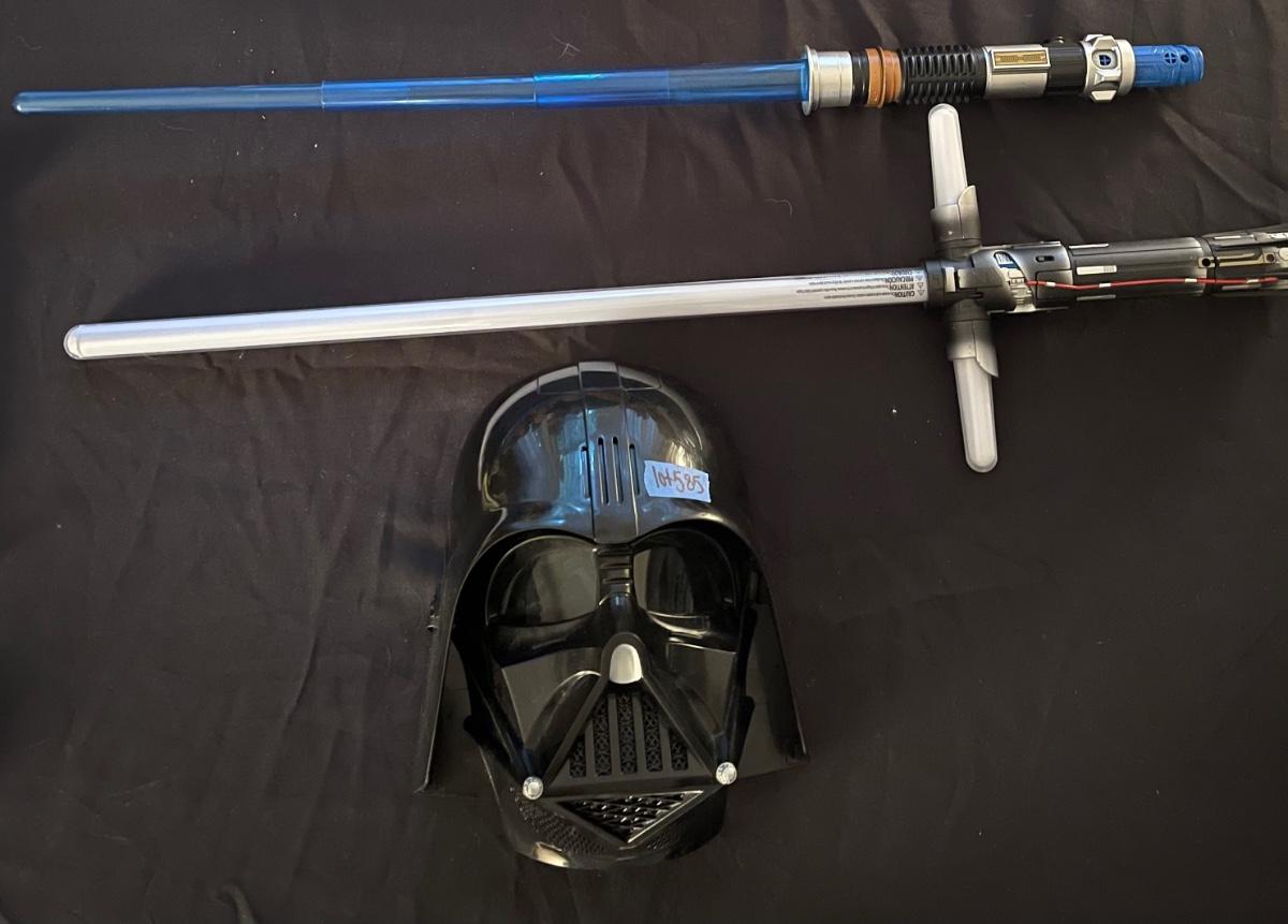 Star Wars Darth Vader mask, (2) Light Sabers.
