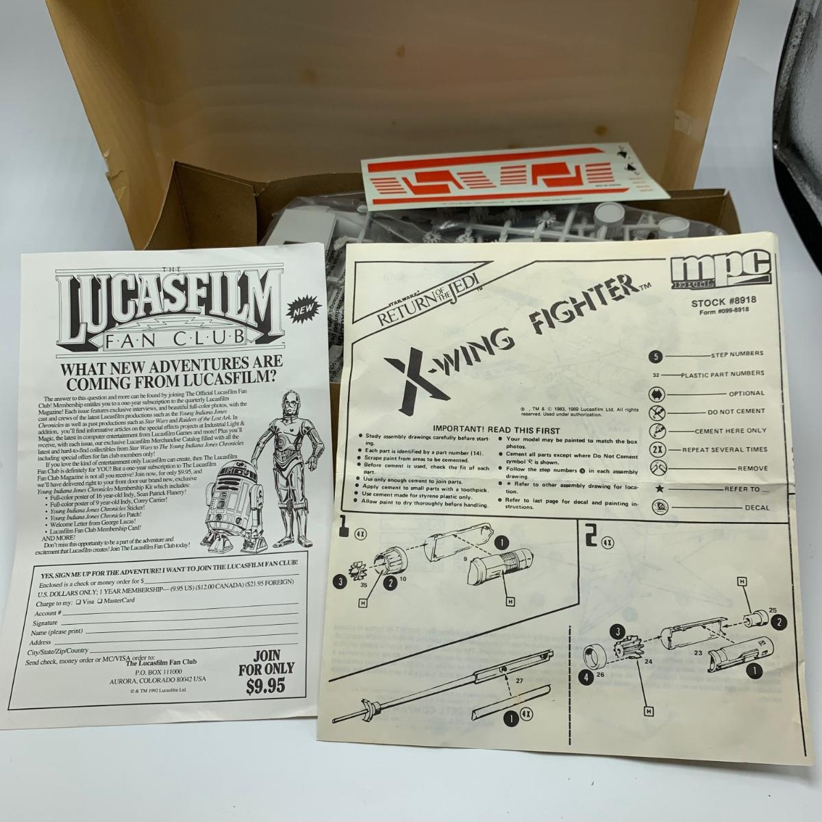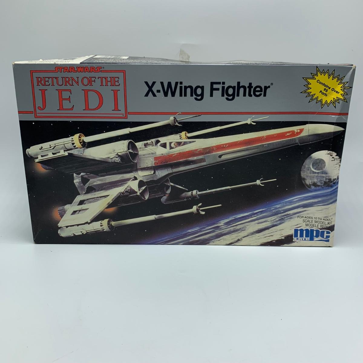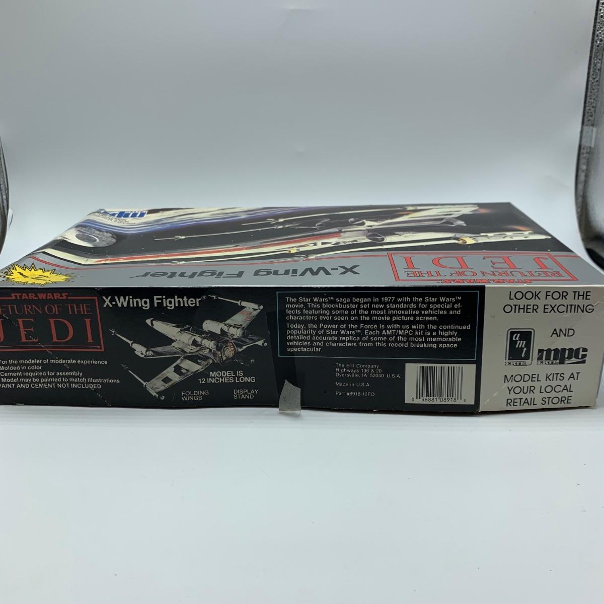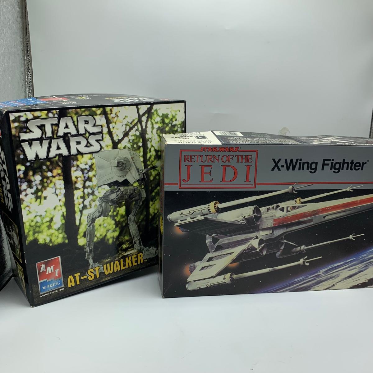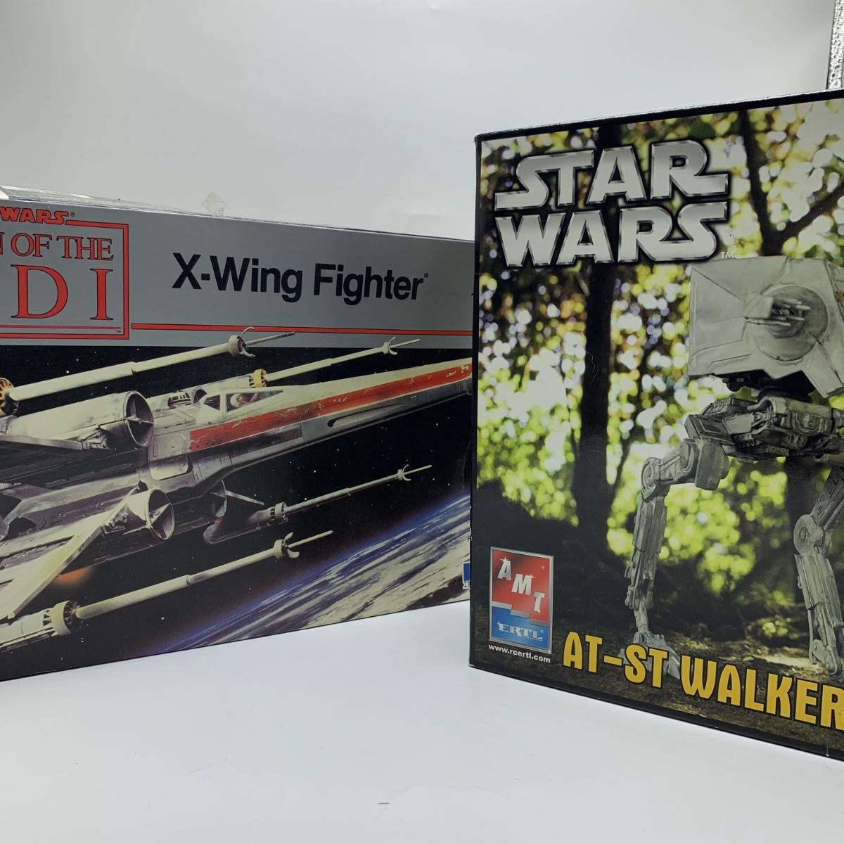 Two Star Wars model kits. One is AT-ST Walker by AMT ERTL. The other is X-Wing Fighter from Return of the Jedi by MPC ERTL. Both kits appear to be unused, but we cannot guarantee all parts are present. The X-Wing Fighter box measures 14” x 8” x 3”H.