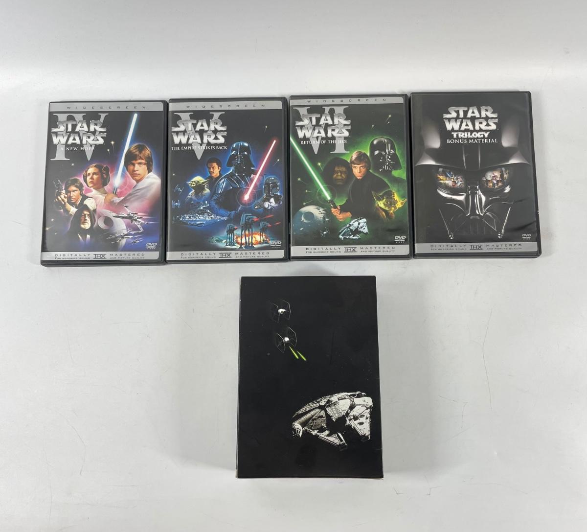 Star Wars Trilogy DVD Set with Bonus Disc. Episodes IV, V and VI, plus Bonus Material disc in original cases, includes booklets and original box.