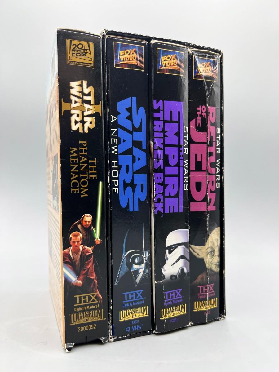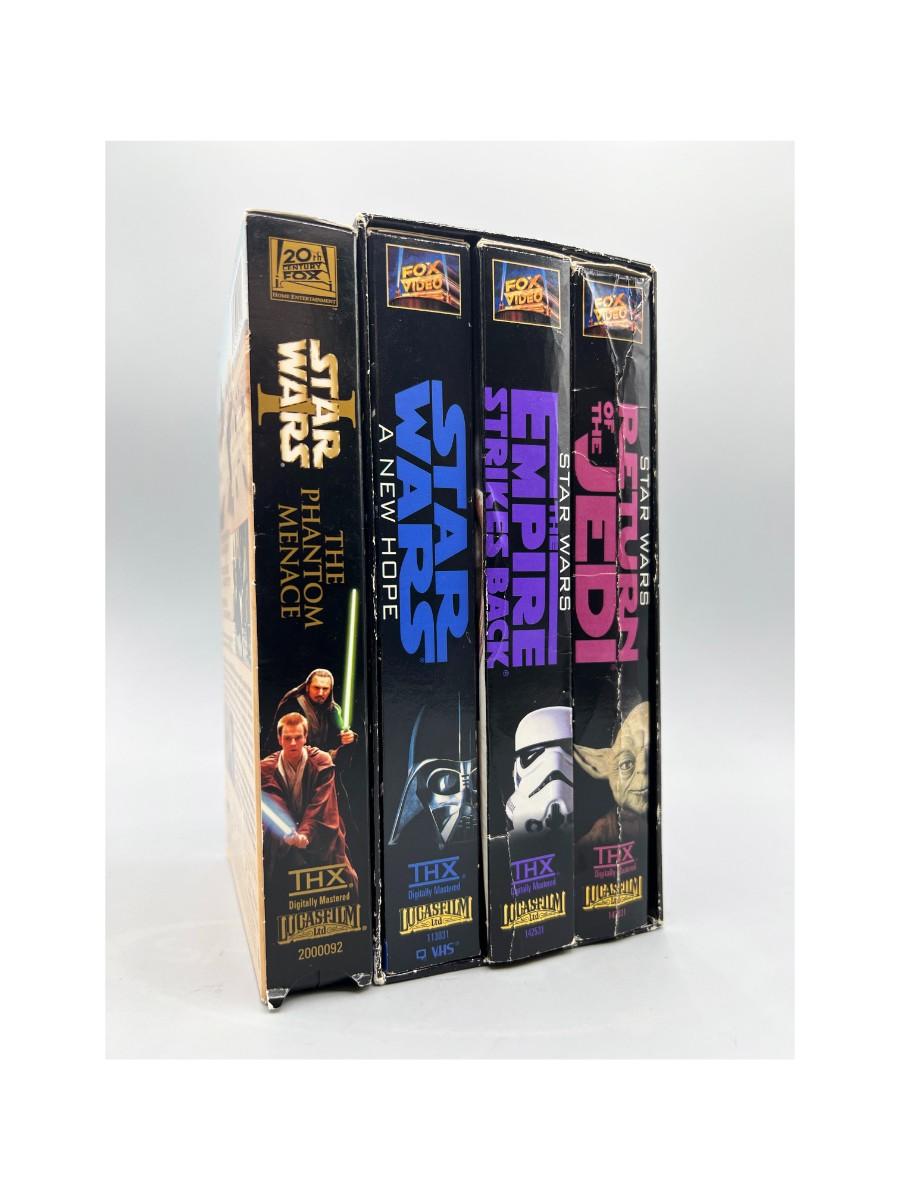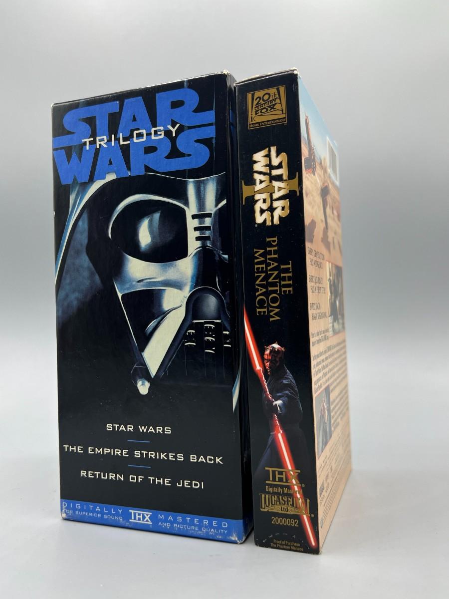 Star Wars trilogy and The Phantom Menace VHS lot. Boxes are in good aged condition, tapes are untested.