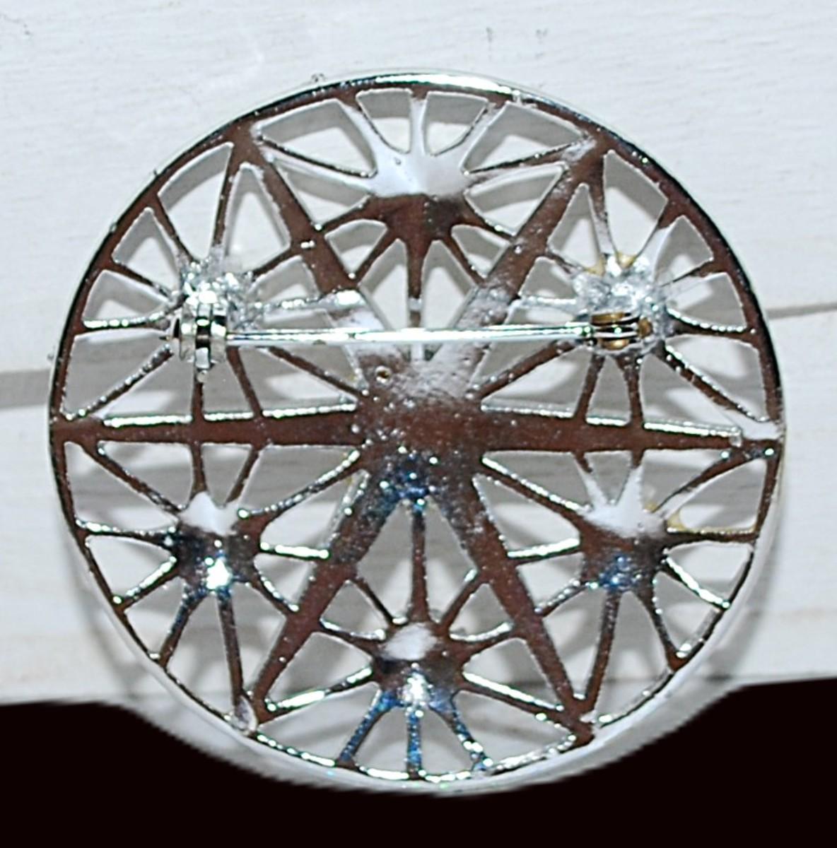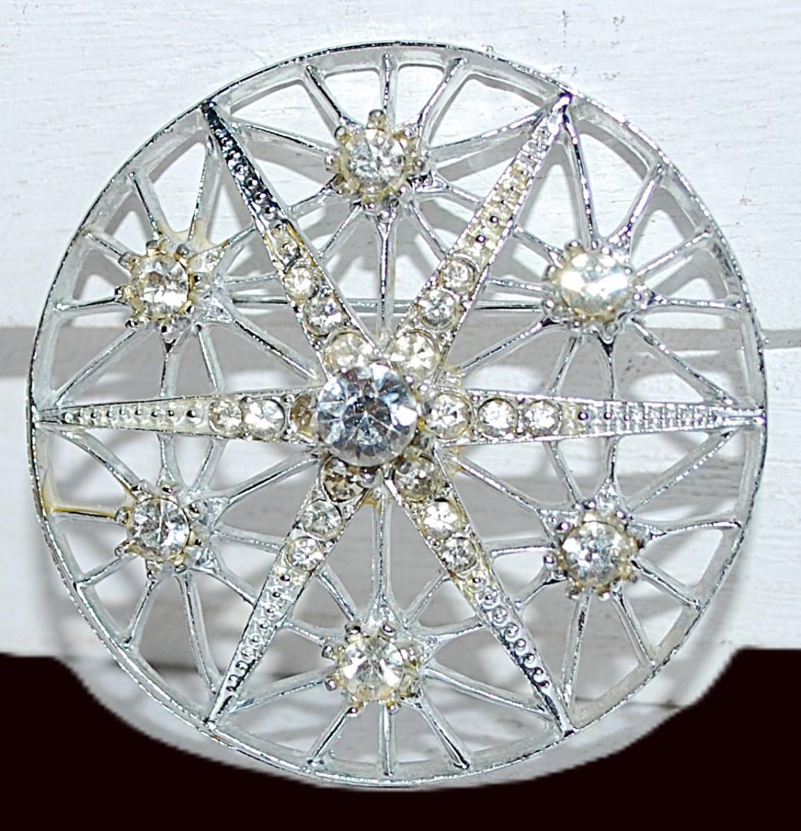 "STAR WHEEL" BROOCH (2" Diam.) with 7 Stones on a Grid Style Silver Tone Setting