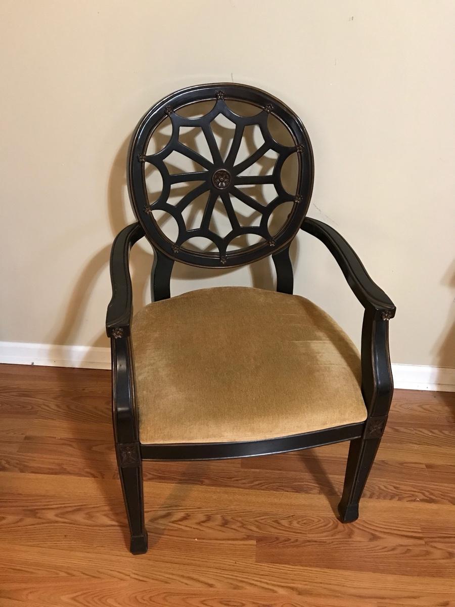 Star-Back Arm Chair #2. Gold upholstered seat by Ashley Furniture. 24"W x 26"D x 19"H