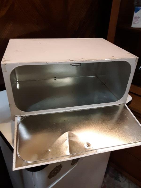 Vintage Metal Breadbox drop down door in good condition