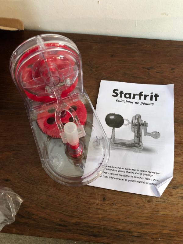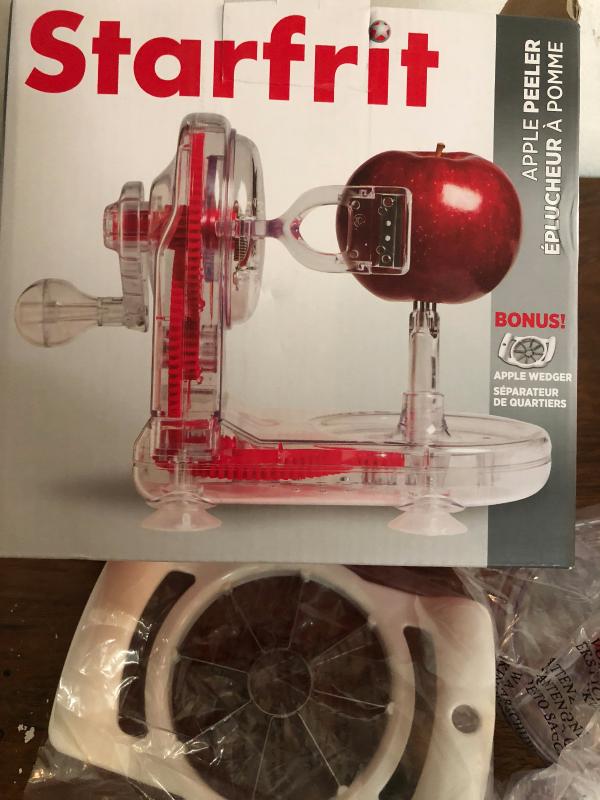 Peeler is new in the box and includes a slicer. If you need shipping please be aware that the cost of shipping may be more than what the item cost. All items ship from zip code 84109, you can go to USPS.com for estimates of cost.
