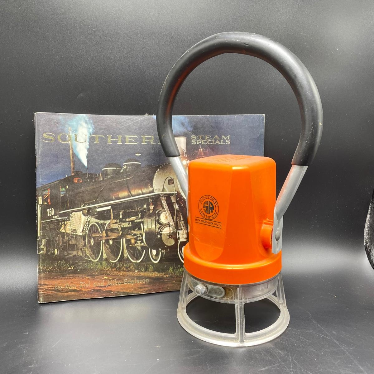 Vintage Starlight 222 Southern Railway Lantern stands about 12” tall. Battery casing is empty, but shows a bit of rust. Lot also includes Ron Ziel and Mike Eagle son’s Southern Steam Specials part color part black and white picture book. See images. Shipping available.