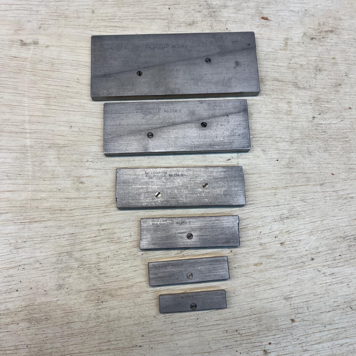 Lot includes a six piece Starrett parallel set. Largest piece measures 5” x .25” x 2”H.