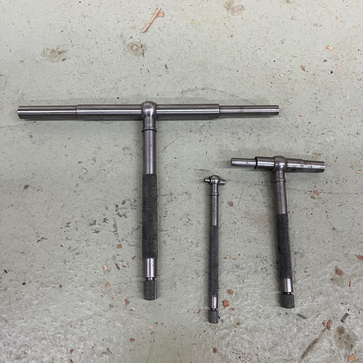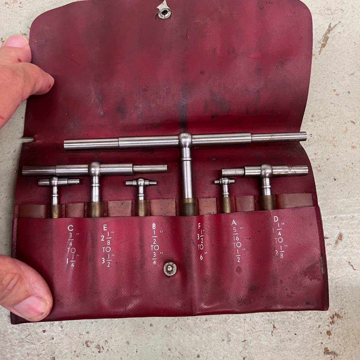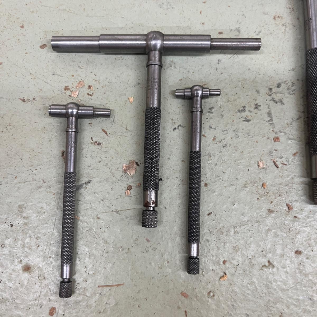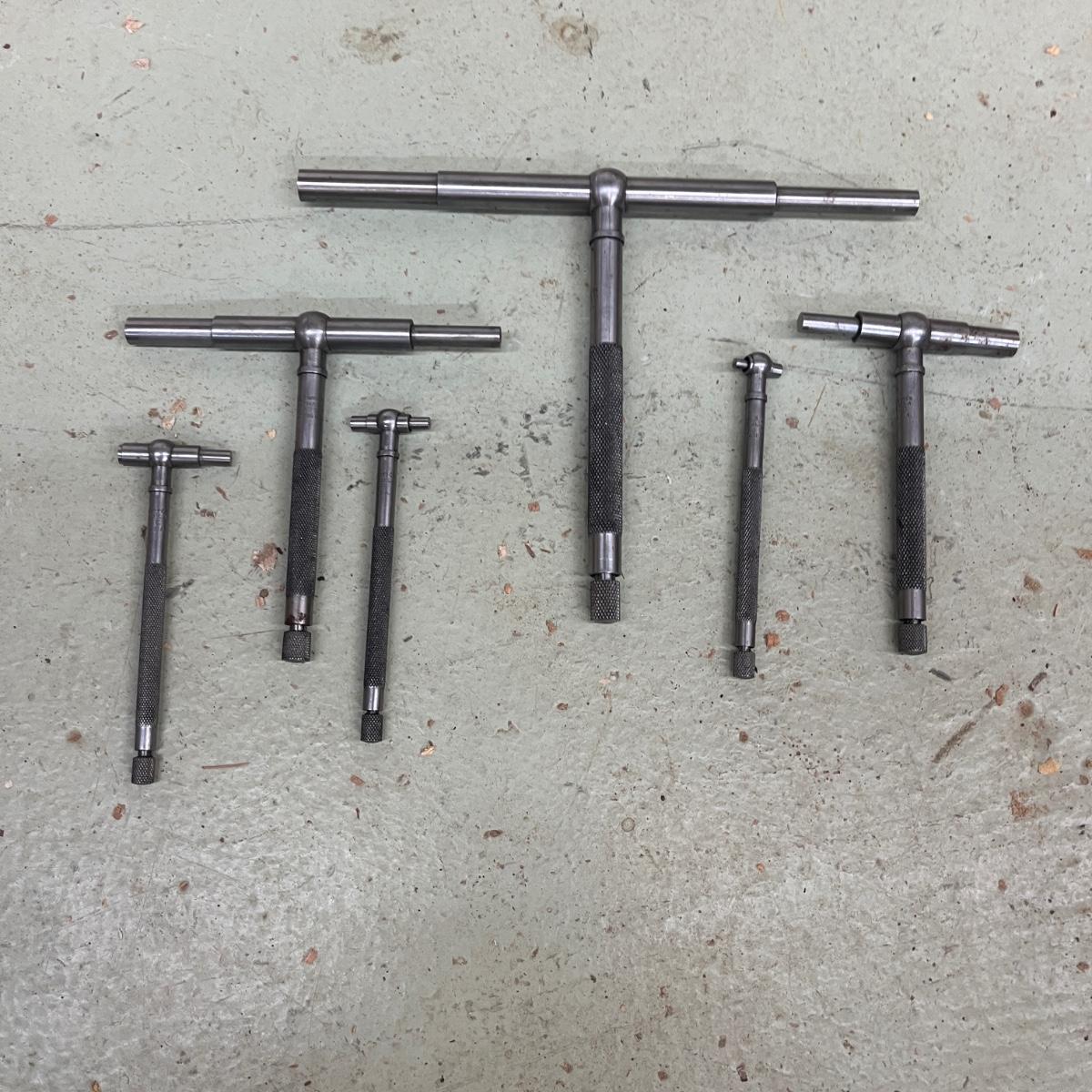Lot includes a six piece Starrett Telescoping gauge set. Largest tool measures 6” x .25” x 4.25”H.