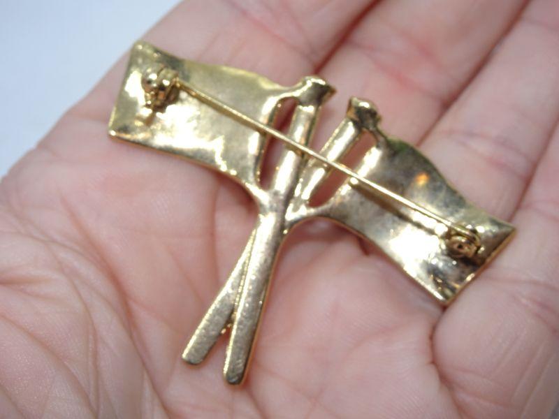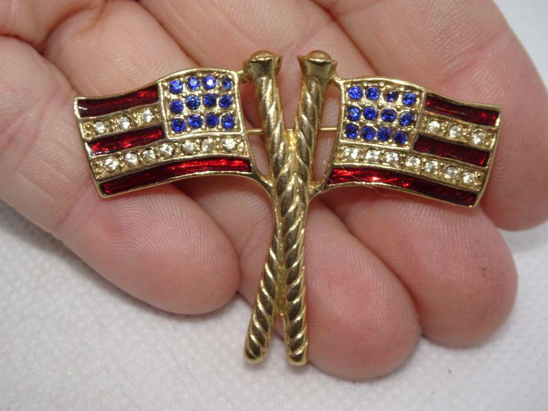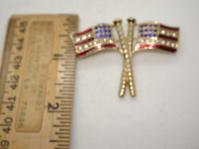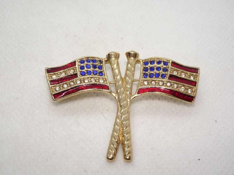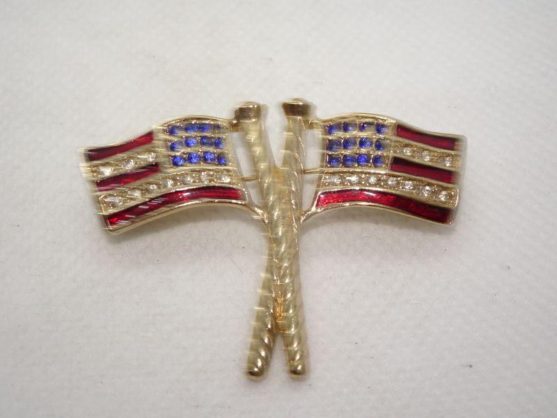 Stars & Stripes, Gold Tone Brooch Rhinestone