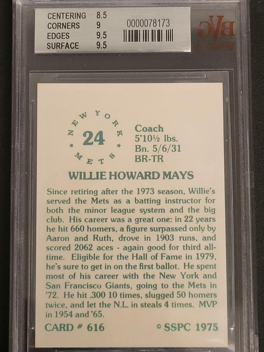 1976 SSPC WILLIE MAYS MINT 9 BECKETT