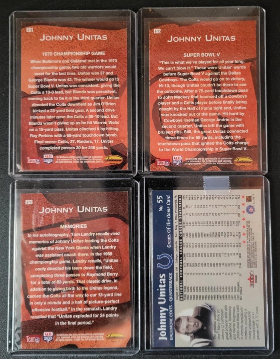 1994 Ted Williams Card Co & 2000 Fleer Johnny Unitas (4 Cards)