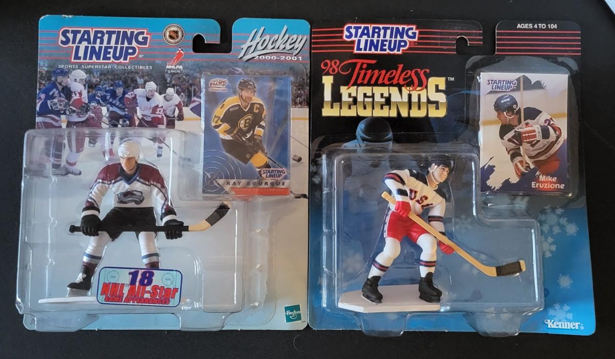 1998/2000 Kenner/Hasbro Starting Lineup Mike Eruzione, Ray Bourque (unopened but is slightly warped)
