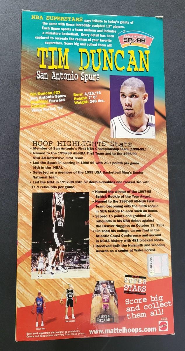 1999 NBA Super Stars 13" Tim Duncan ( has creases on top of package as pictured)
