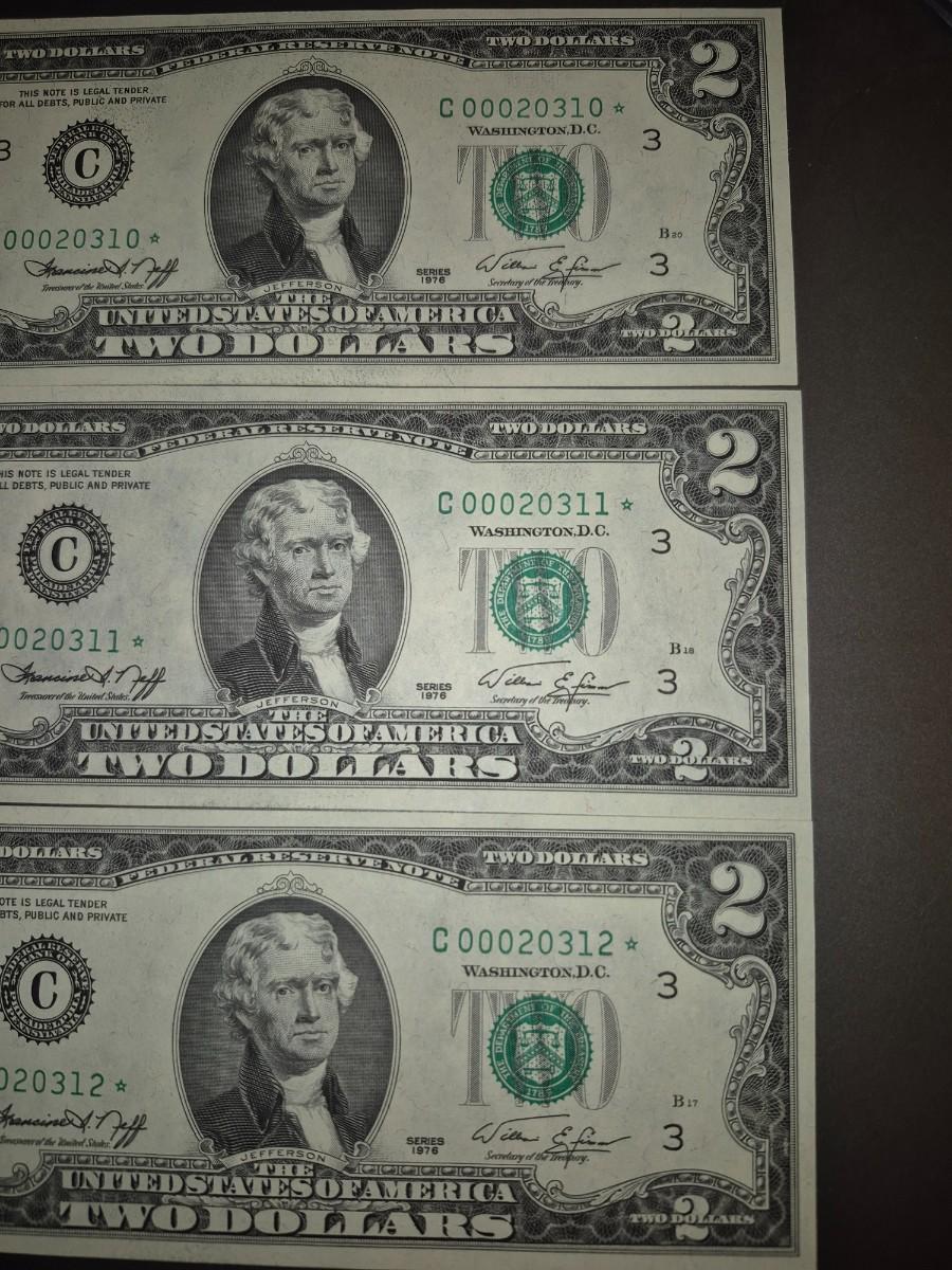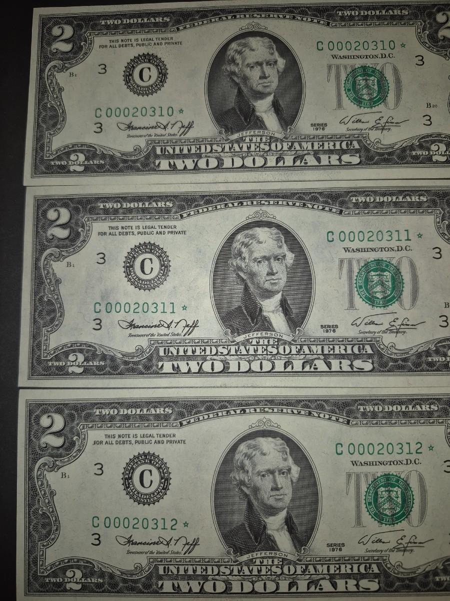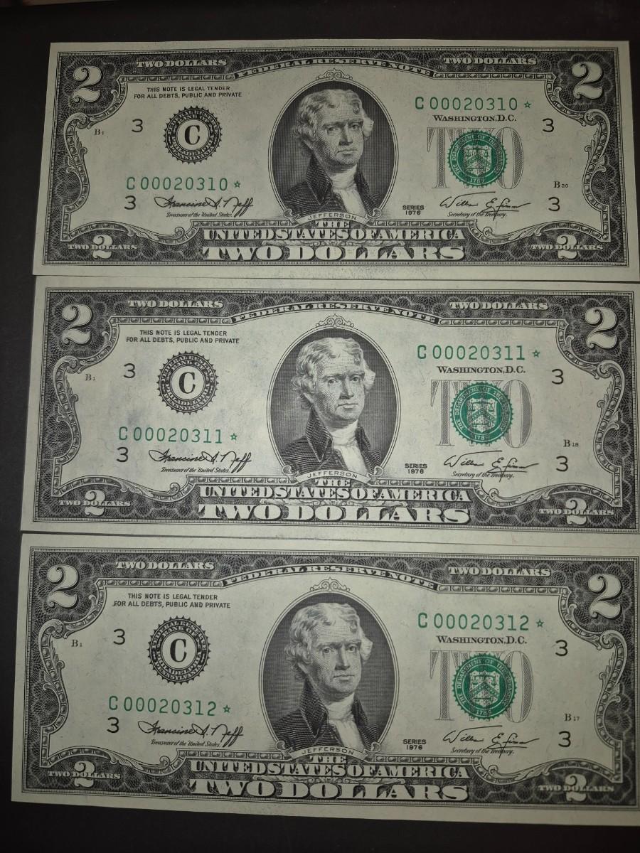 (3) Consecutive 1976 Star Note $2 Bills Low Serial Number