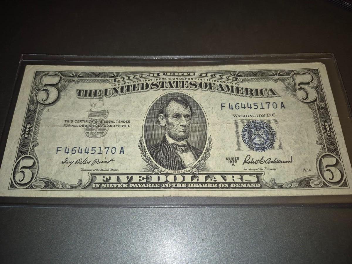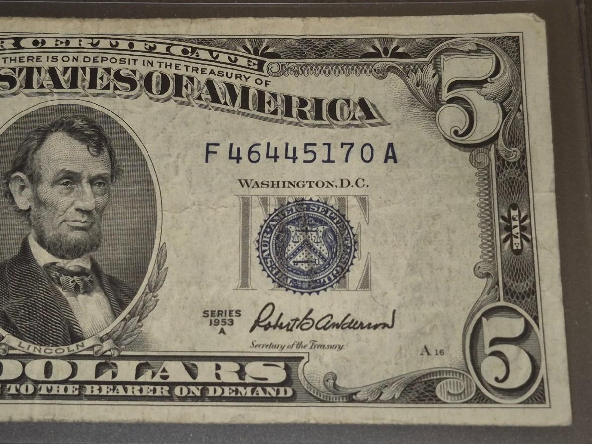 1953A $5 Silver Certificate Error no 'IN GOD WE TRUST' on back