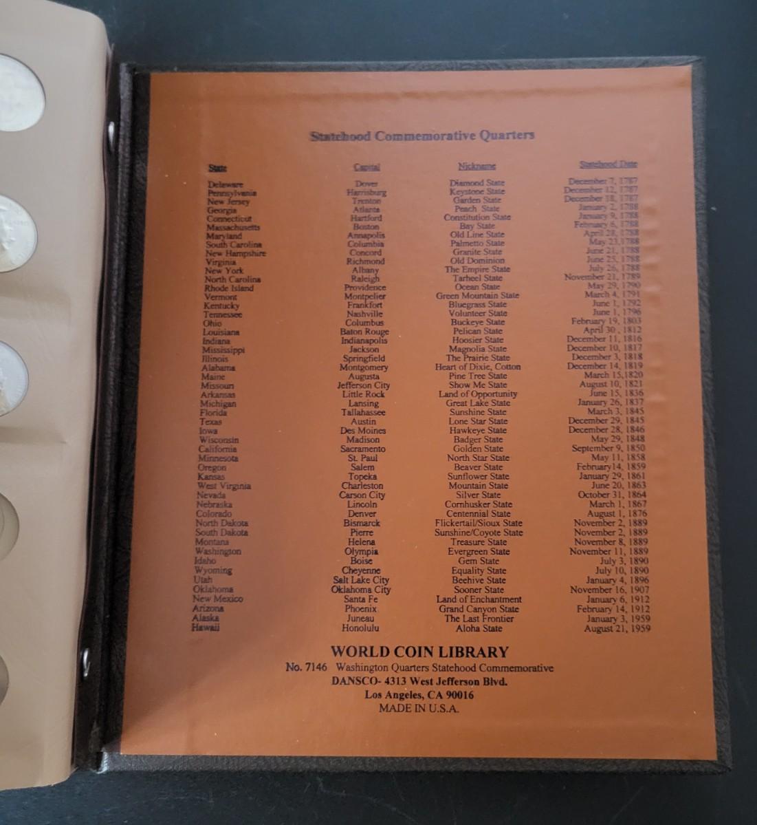 Washington Quarters Statehood Commerative 1999-2008 Date Set