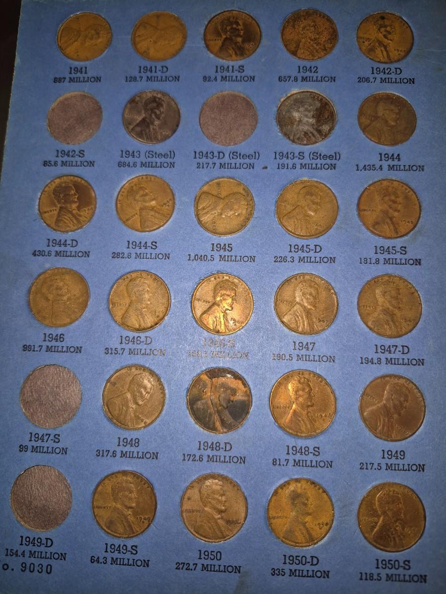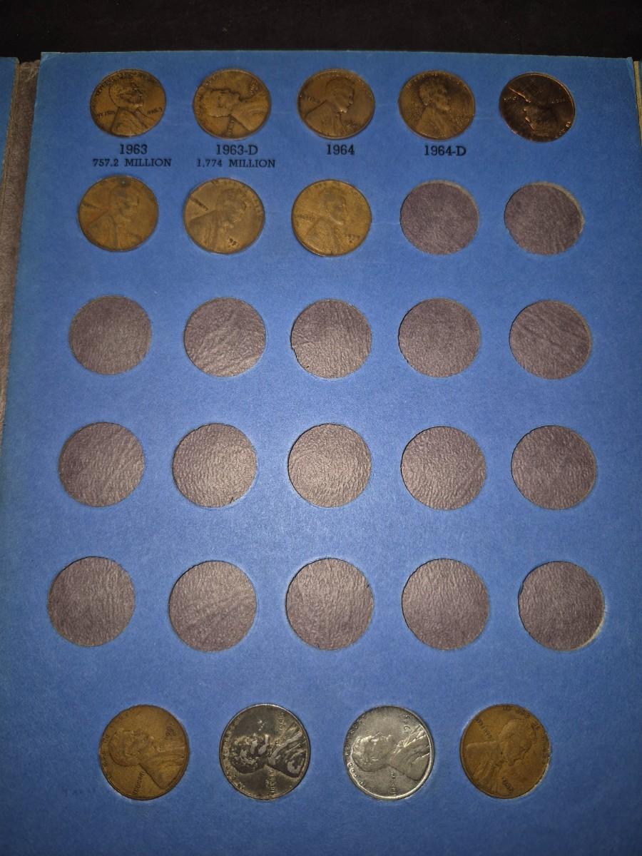 Lincoln Pennies 64 total pennies including steel pennies 1943. this is an incomplete set. please look at all the photos for condition as well.
