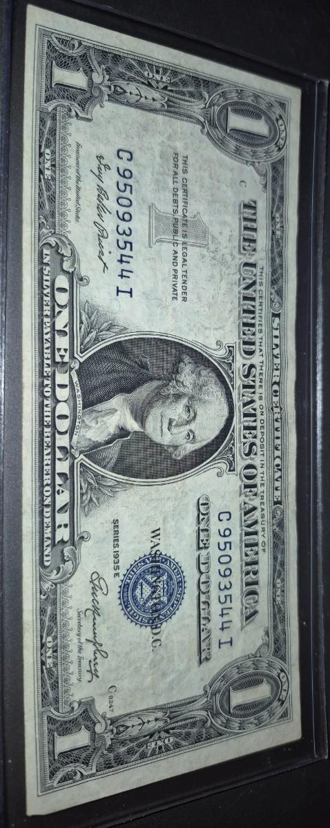 This is for a 1935 E $1 Silver Certificate without the Motto "in God We Trust", Please look at all photos for condition