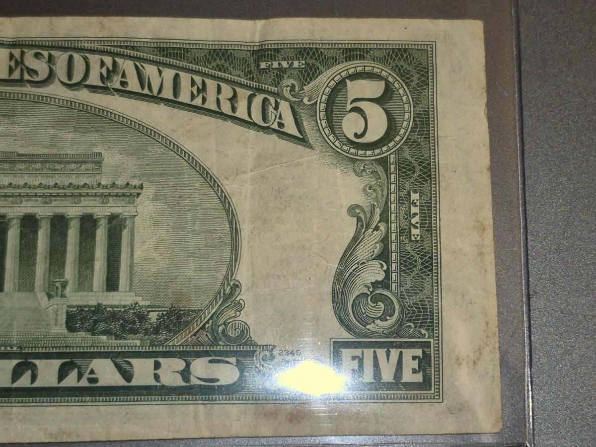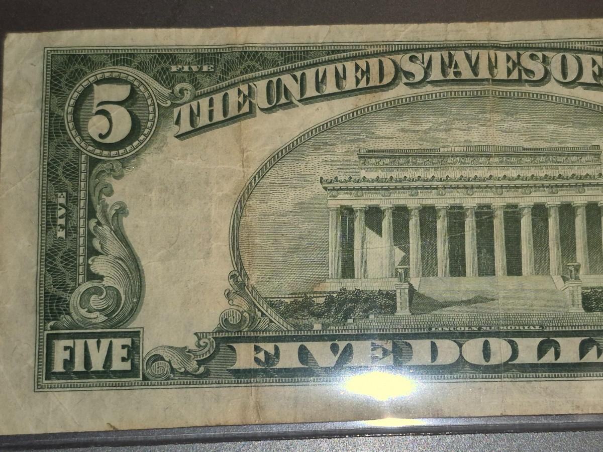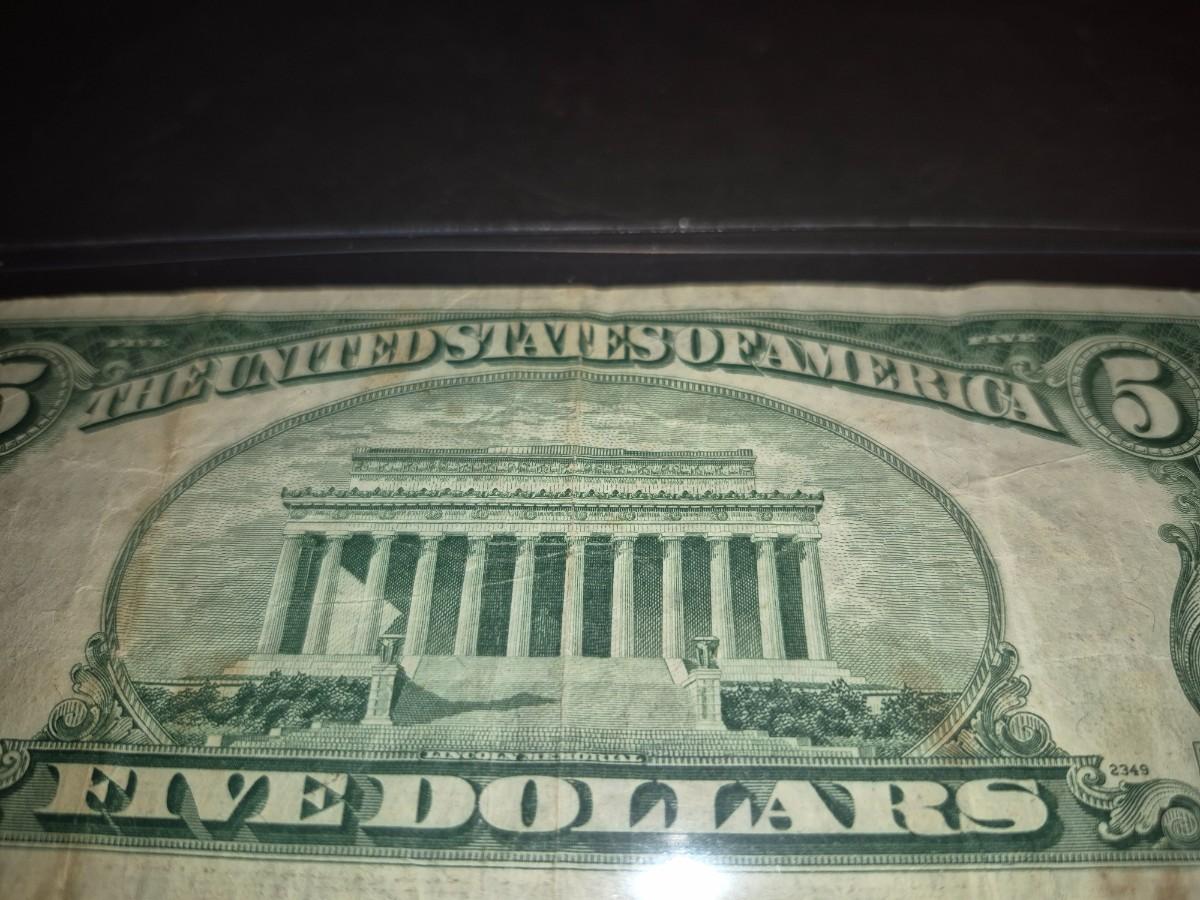 1953 Red Seal $5 Bill. This is the last year that there was no motto on the back.