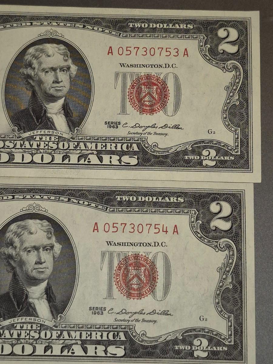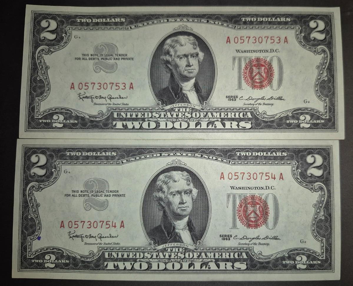 (2) 1963 RED SEAL $2 Bills Consecutive