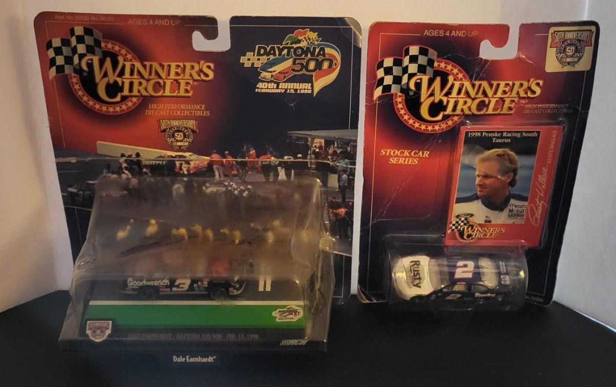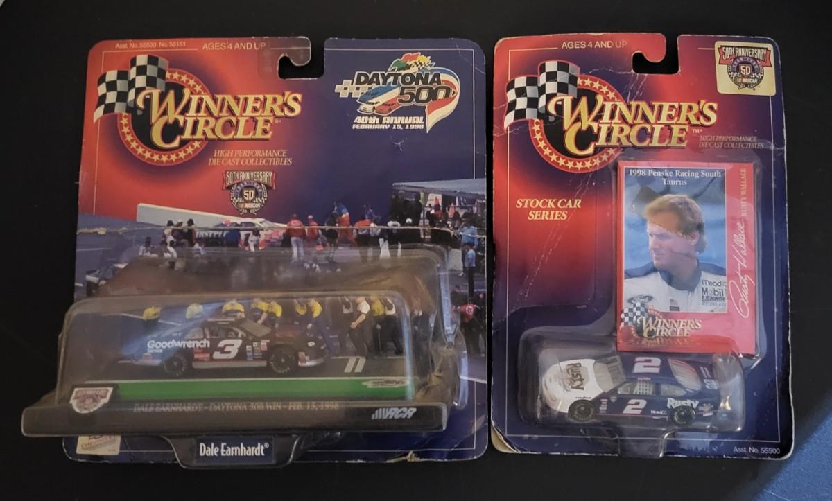 Dale Earnhardt & Rusty Wallace Winners Circle (Both have damage to packages as pictured, are sealed)