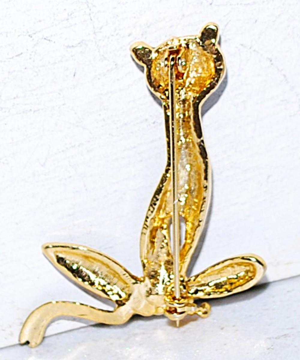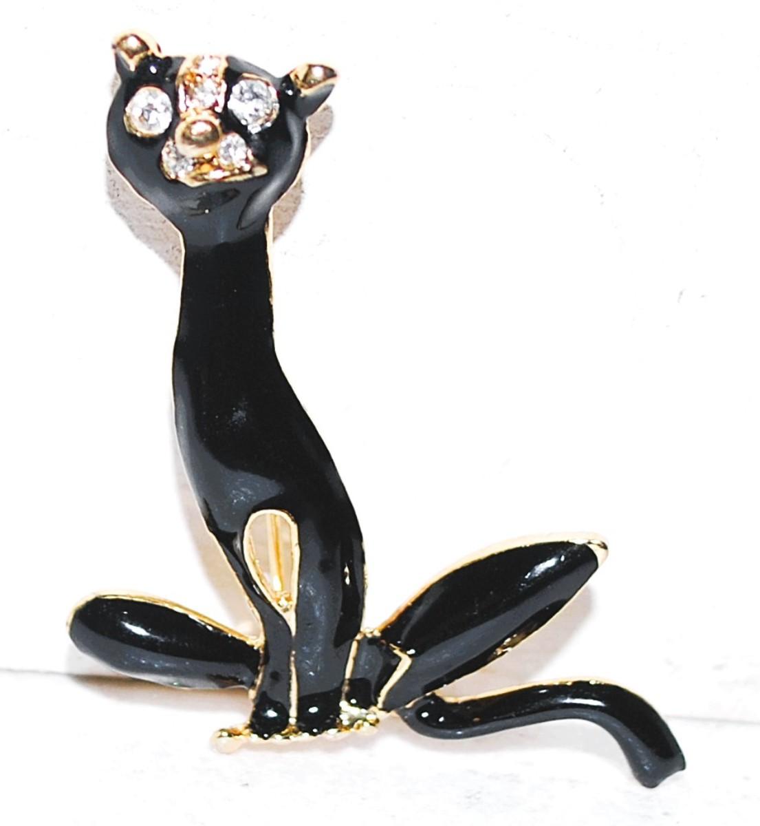 Stately BLACK CAT BROOCH (1¾" x 1½") with Clear Stones Eyes & Mouth and Gold Point Accents on a Gold Tone Setting