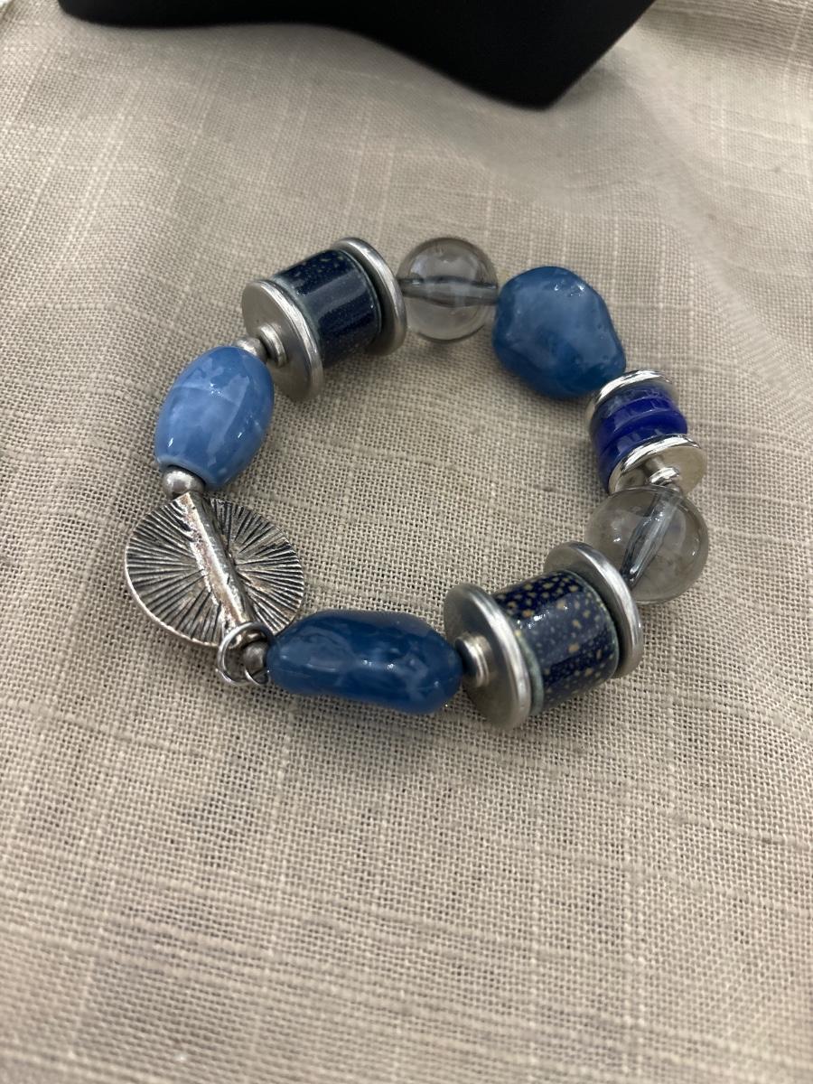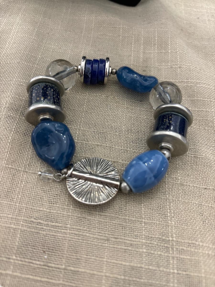 Statement blue and clear beaded bracelet