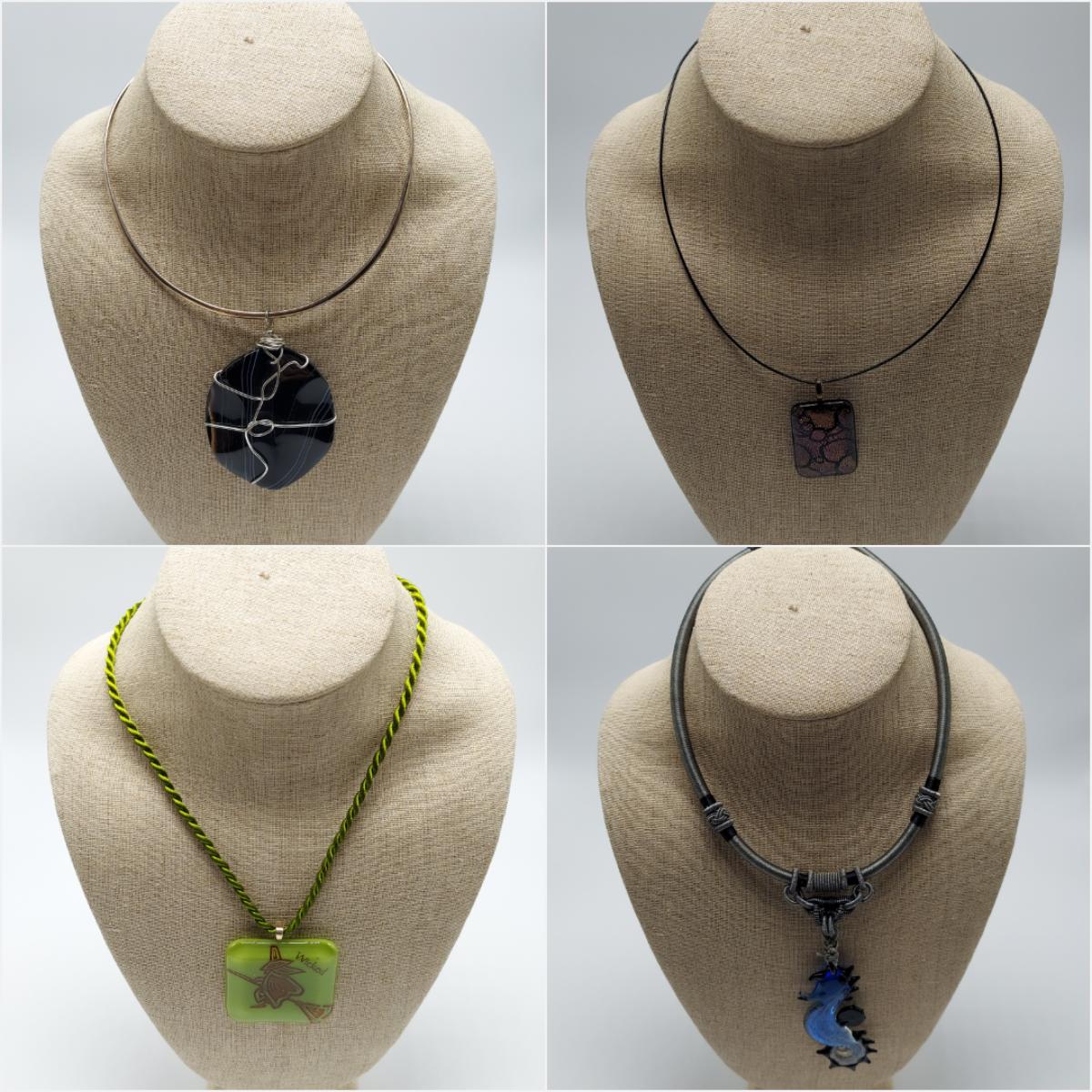 Statement Choker Necklaces w/ Wire Wrapped Pendants and more (B1-BBL)