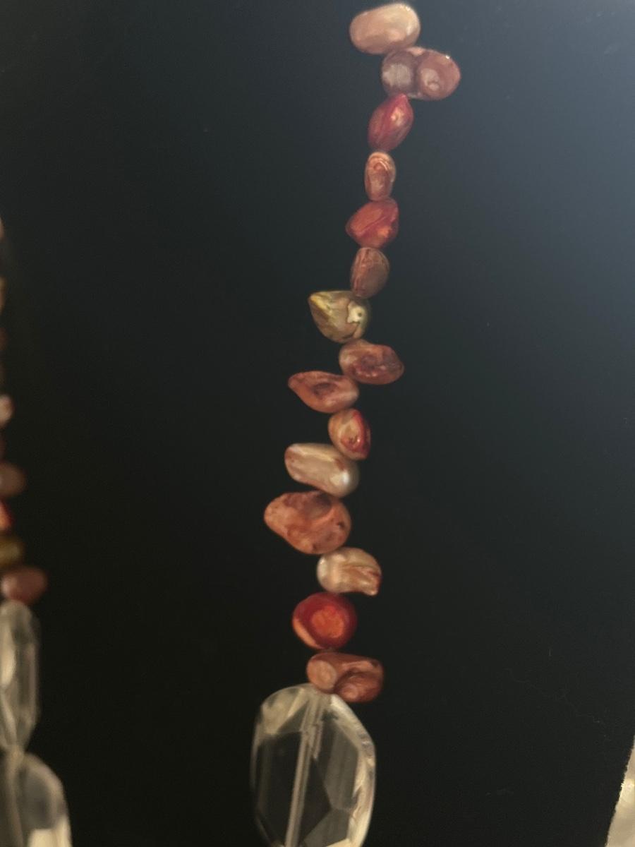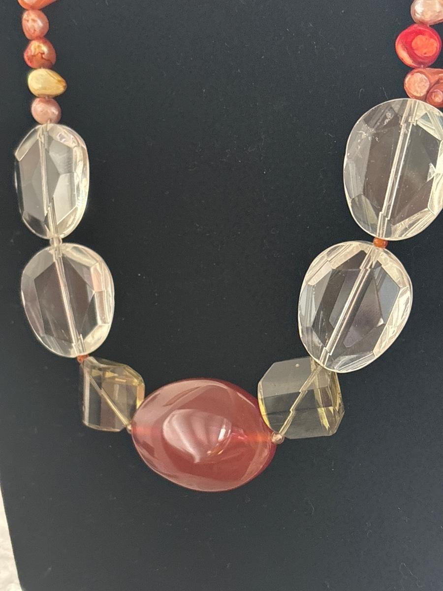 Statement gemstone necklace With Crystal and freshwater Cultured, champagne, coin, pearls