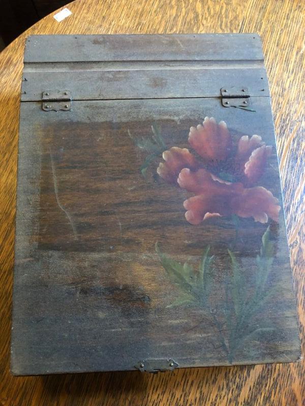 OLD PAINTED WOOD STATIONARY BOX, GOOD VINTAGE CONDITION.