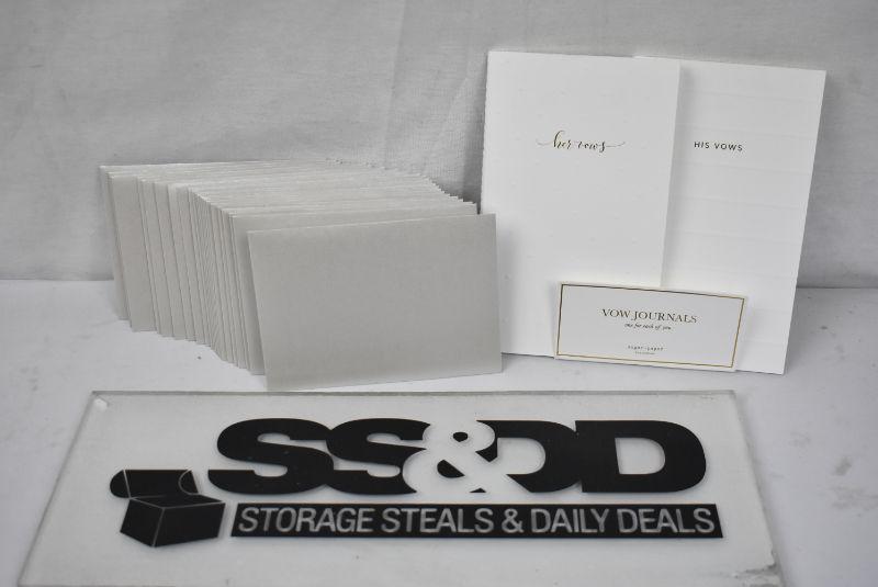 Stationery: Her Vows & His Vows Notebook Journals, & 22 Shimmer Silver Thank You Card Envelopes - New