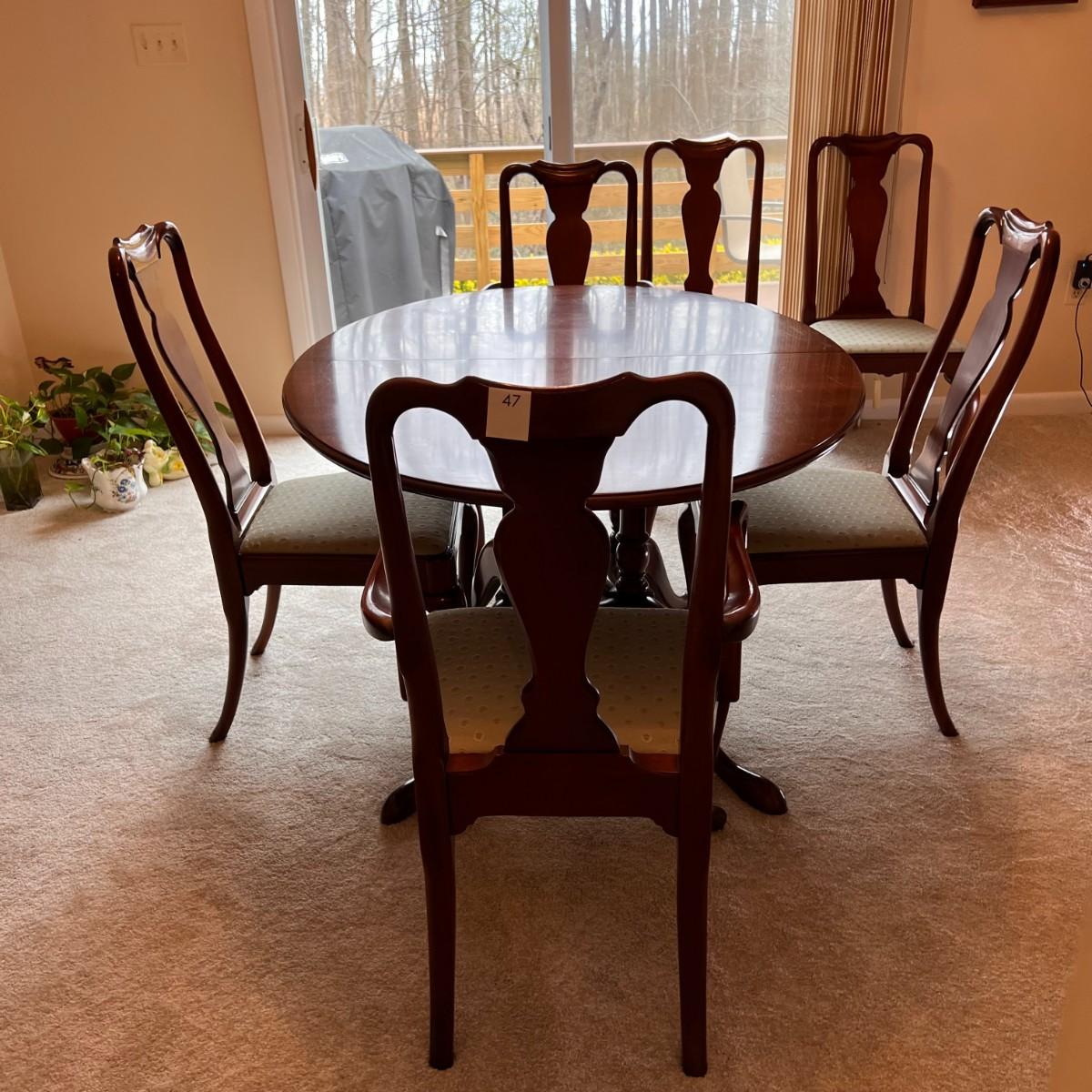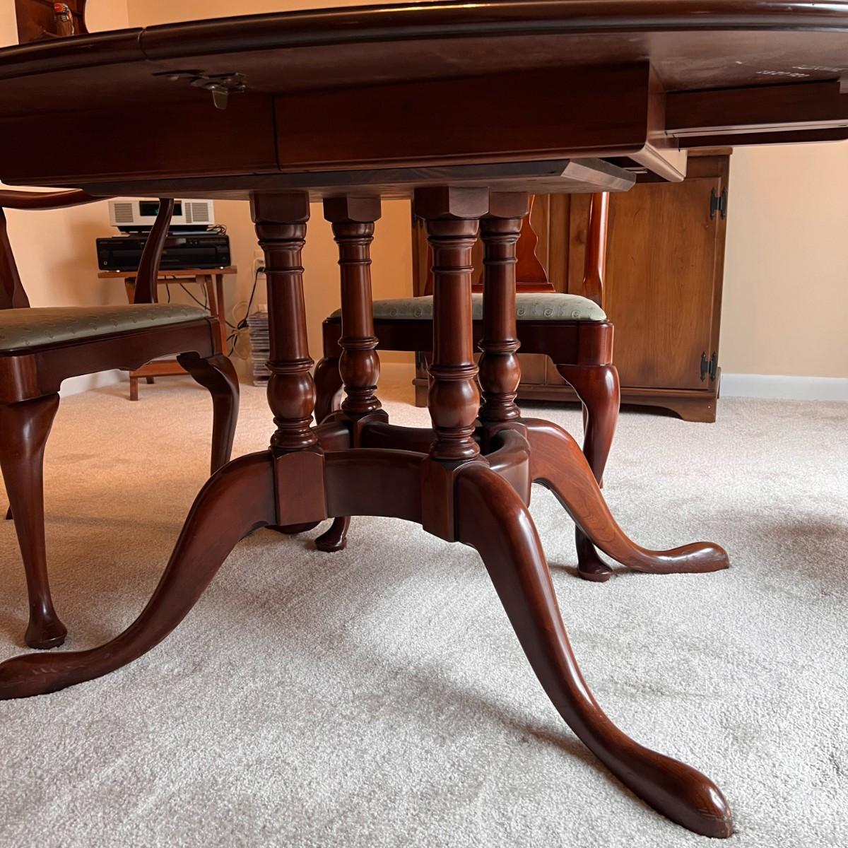 STATTON Queen Anne Old Towne Cherry Dining Table Set - 6 chairs, expansion leaves, pads