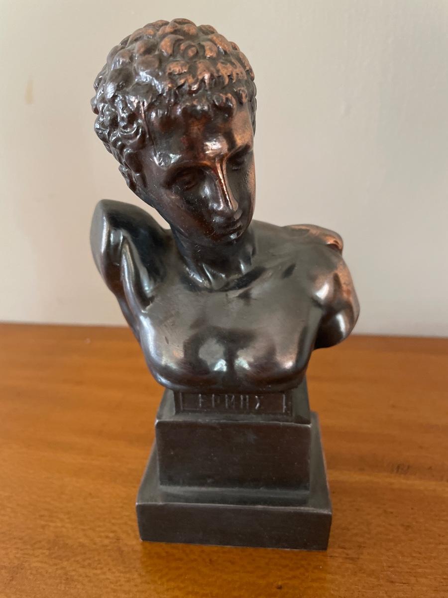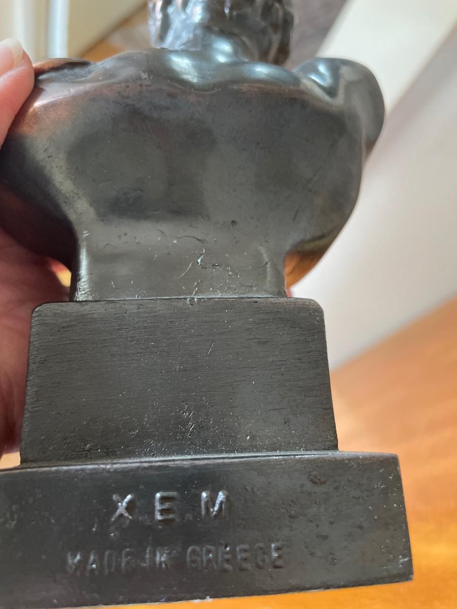 X.E.M statue, ashtray, vintage postcards and bank bag, Gold Leaf Kit